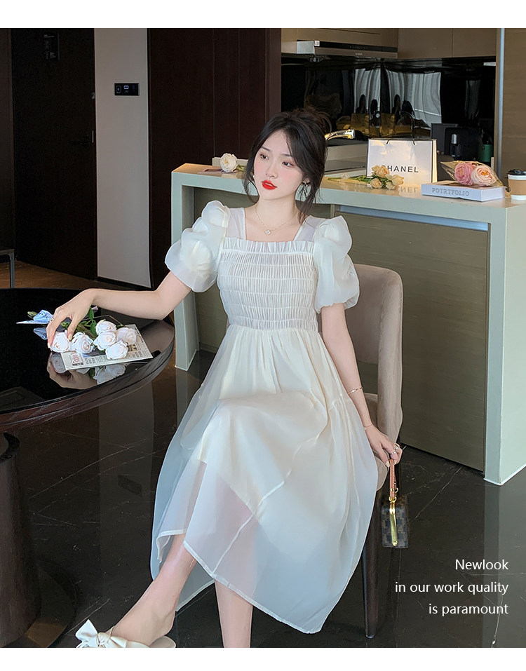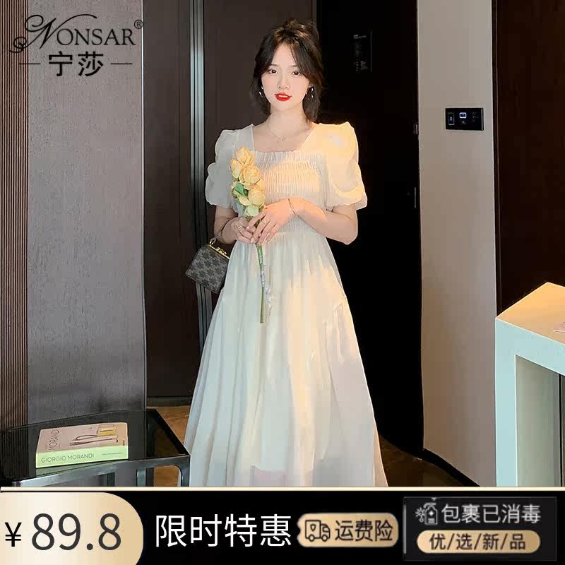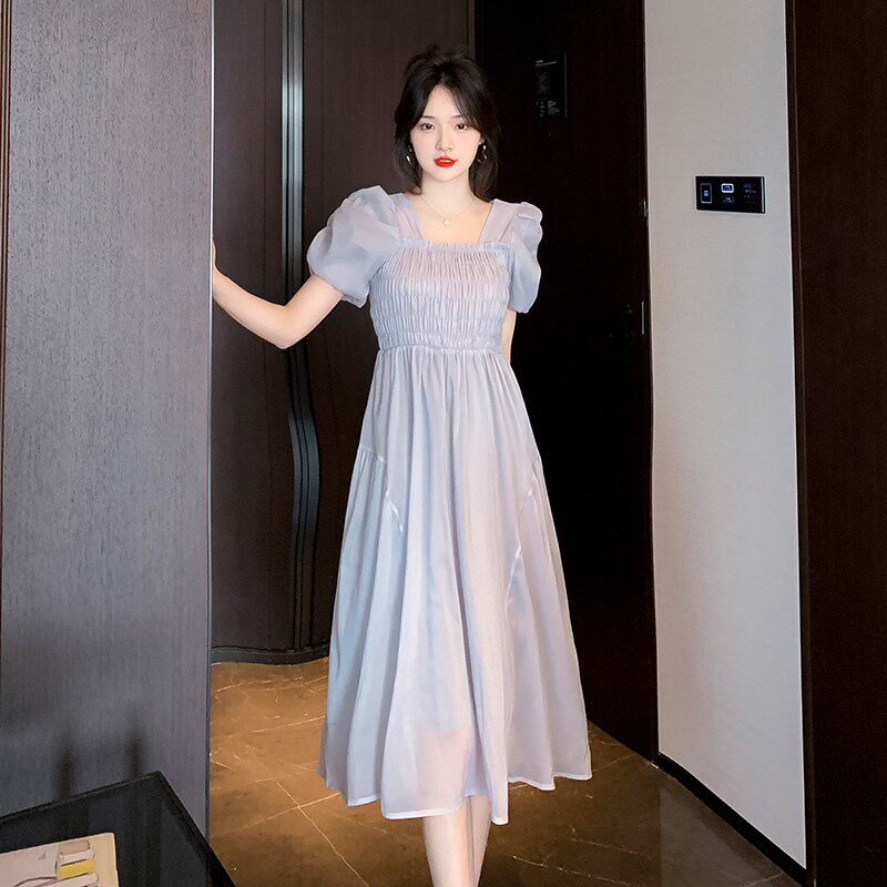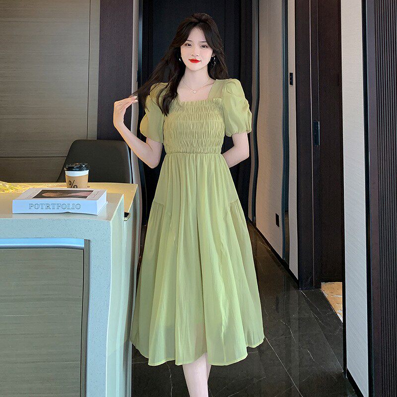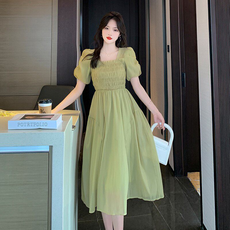 Шифоновое летнее платье, длинная юбка, рукава фонарики, коллекция 2023, подходит для подростков, французский стиль