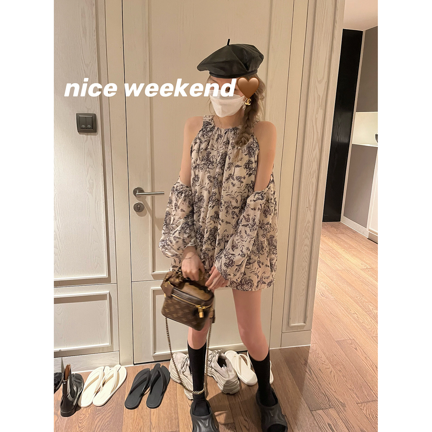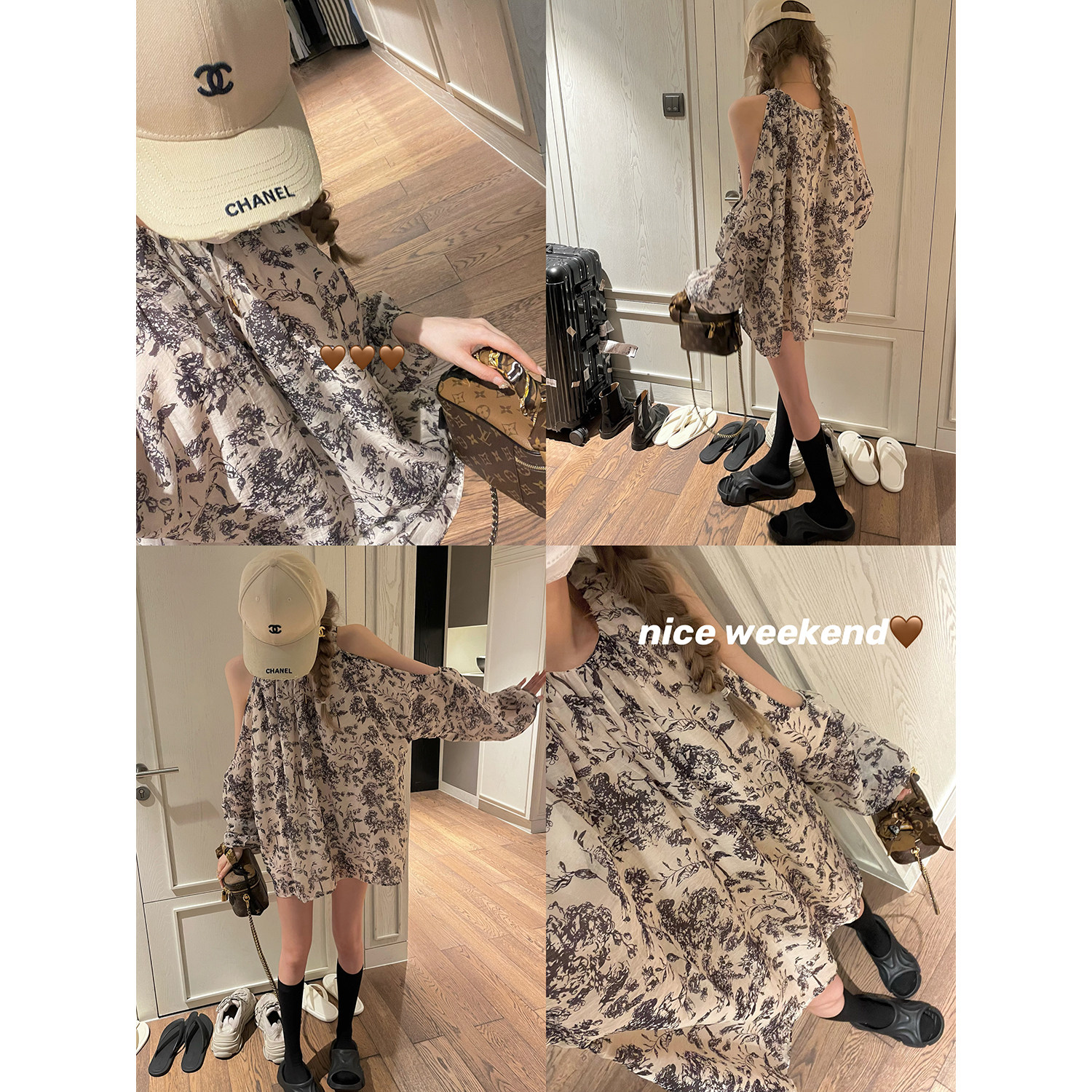 Гигант коллекции NSS!Хороший дизайн юбки -нишевая подключая шея -сдержанное цветочное платье