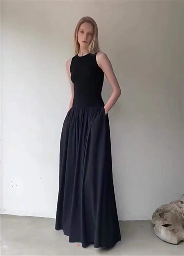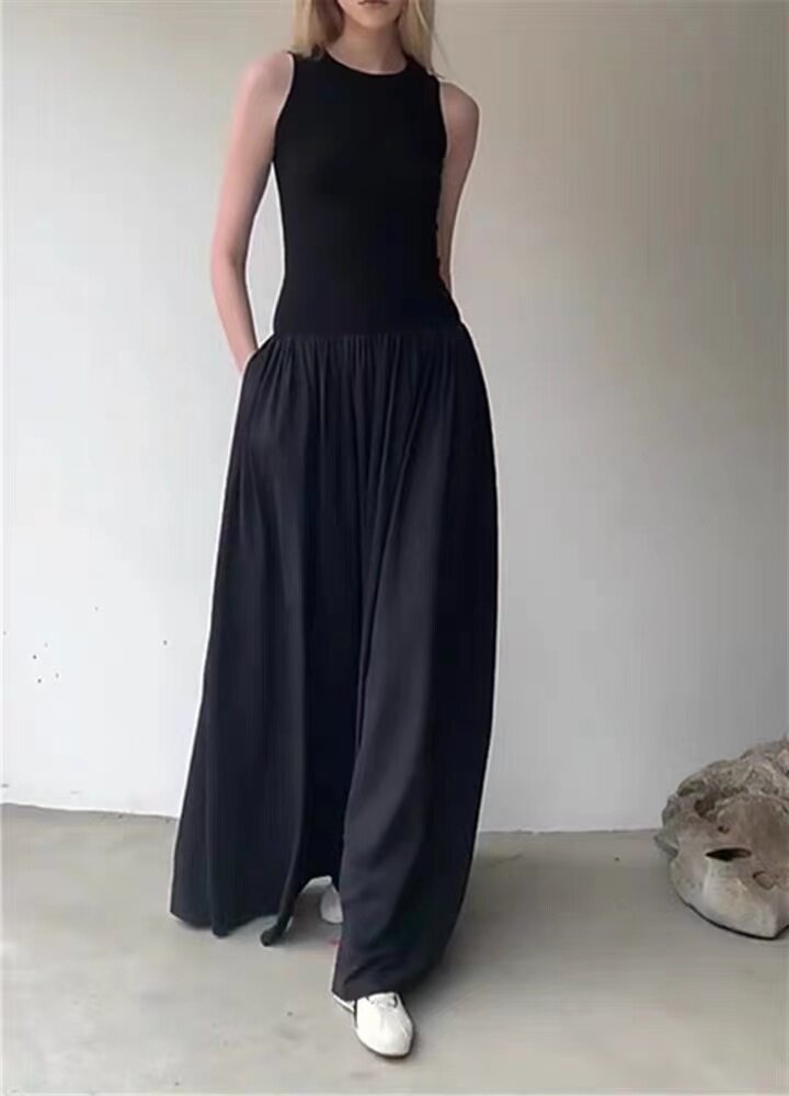 Спортивное динамичное платье без рукавов, юбка, черный приталенный корсет, платье с рукавами без рукавов, изысканный стиль, длина макси