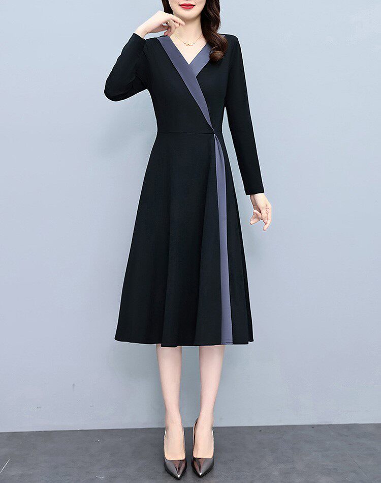 Осеннее демисезонное платье, черный корсет, длинная юбка, коллекция 2022, большой размер, яркий броский стиль, в западном стиле, средней длины