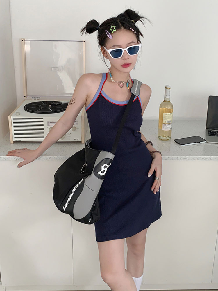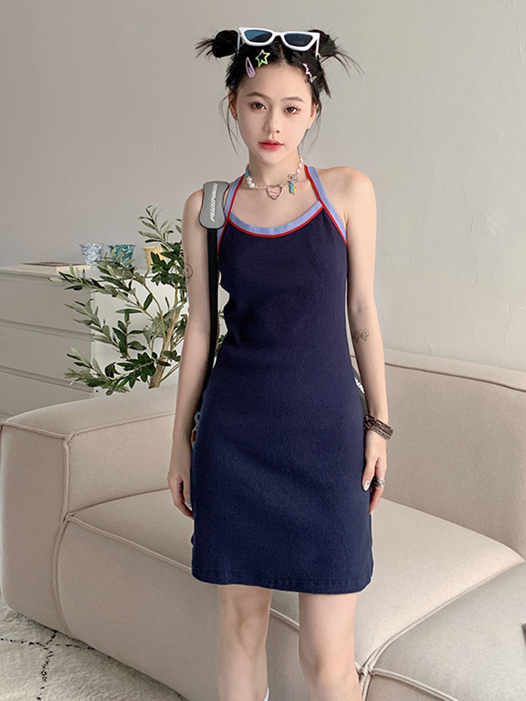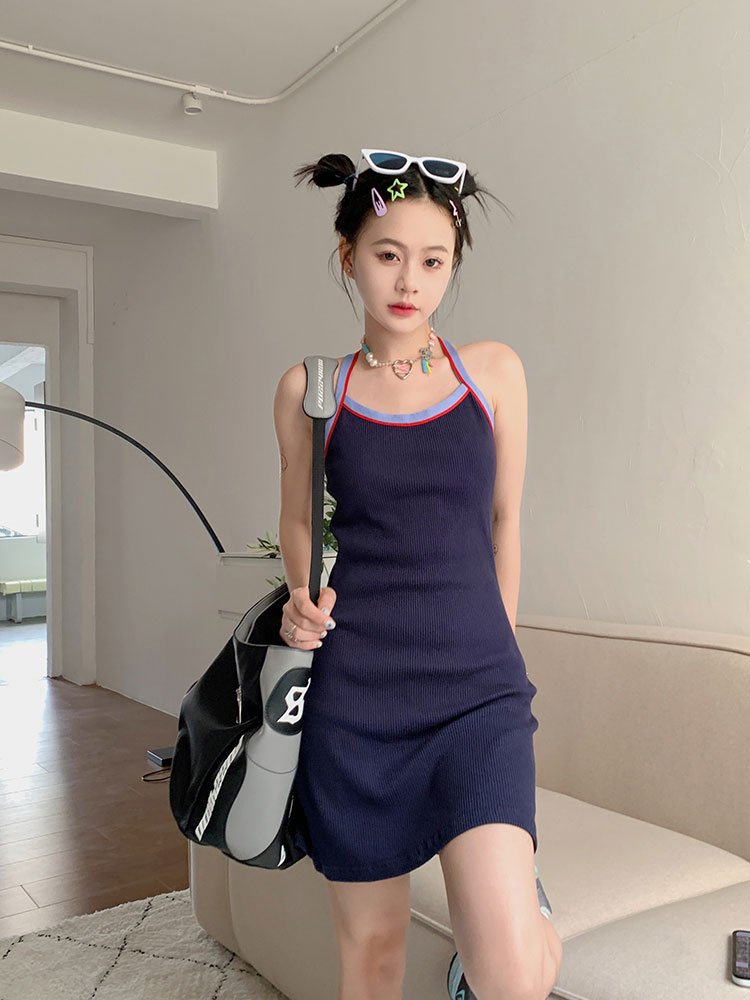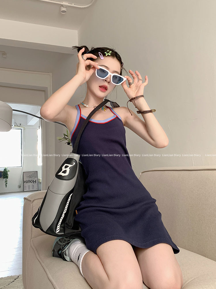 Летнее трикотажное платье без рукавов, юбка, платье-комбинация, майка, мини-юбка, облегающий крой, с акцентом на бедрах