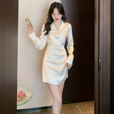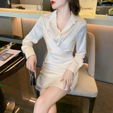Весеннее дизайнерское платье, корсет, рубашка, французский стиль, изысканный стиль, цвета шампанского, тренд сезона, воротник поло