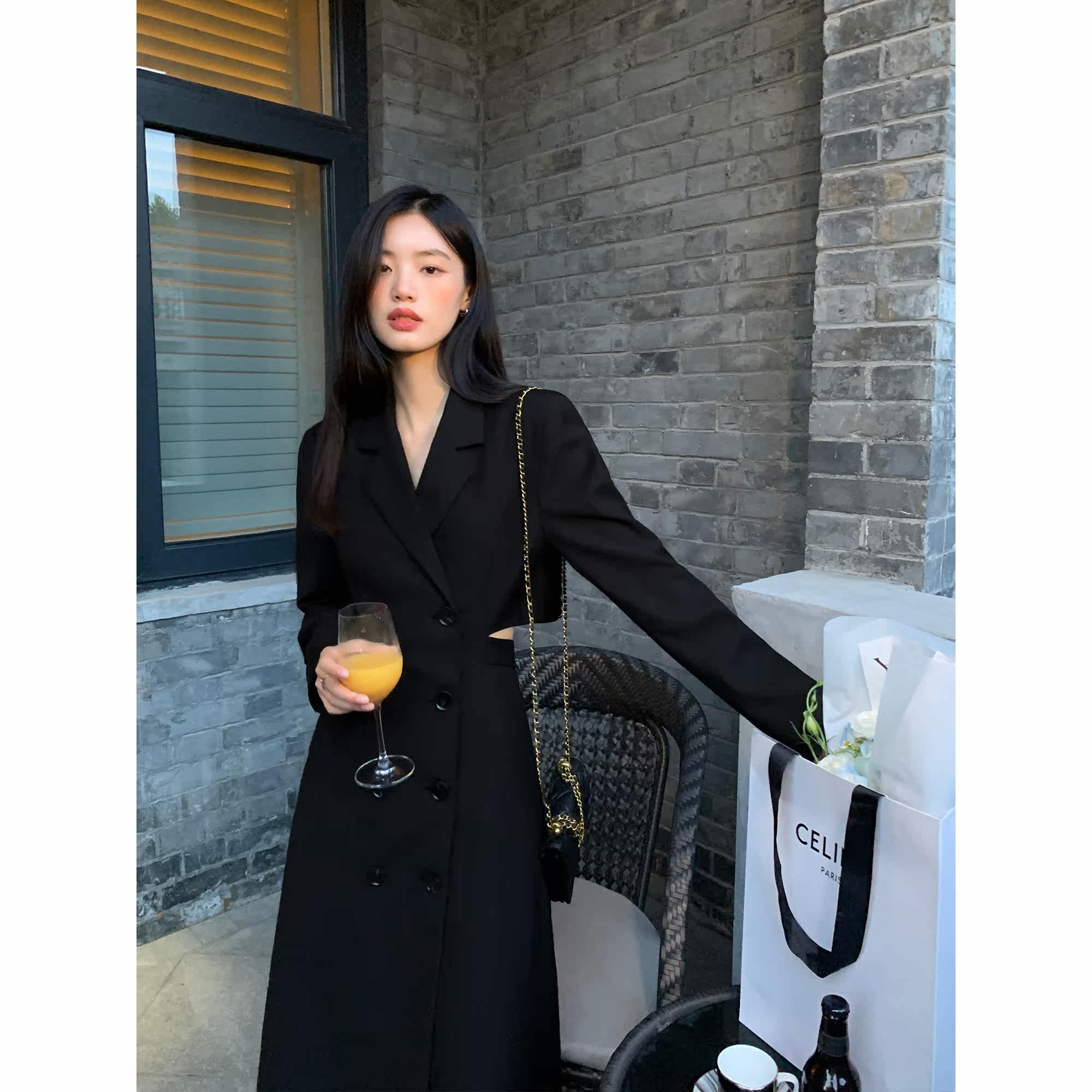 Черный лонгслив, осенний пиджак классического кроя, платье, длинная юбка, коллекция 2022, премиум класс, яркий броский стиль, средней длины, длина макси