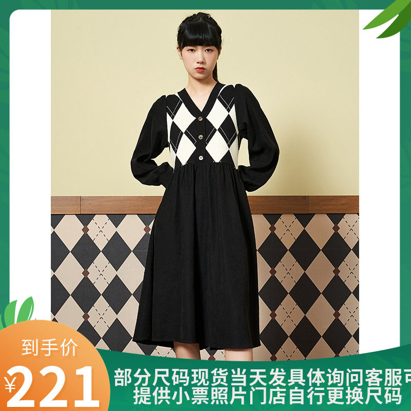 Осенние милые шахматы, платье, новая коллекция, А-силуэт, 19W
