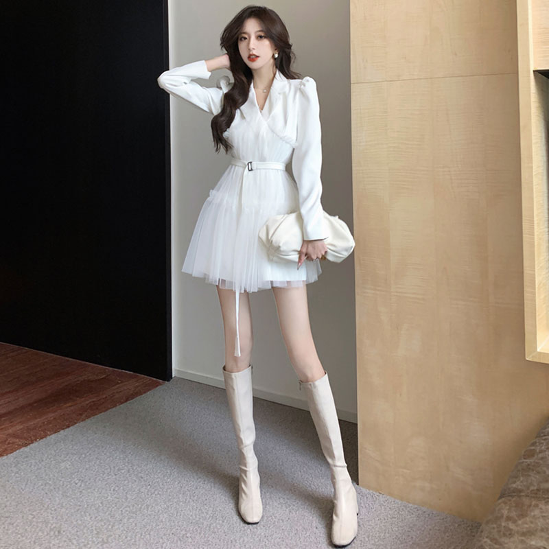 Юбка, костюм, весеннее платье, в стиле Шанель, изысканный стиль, французский стиль, из фатина, подходит для подростков