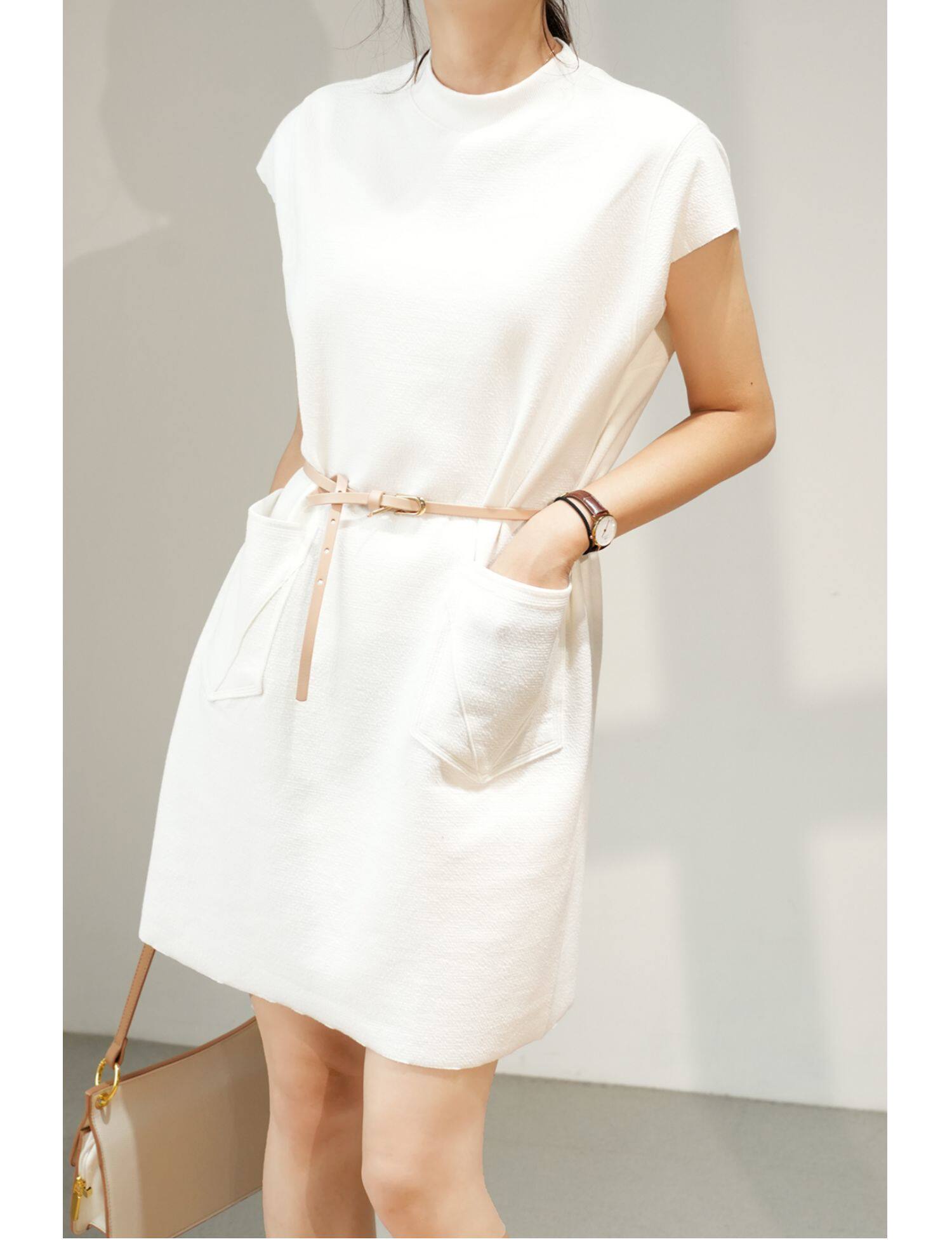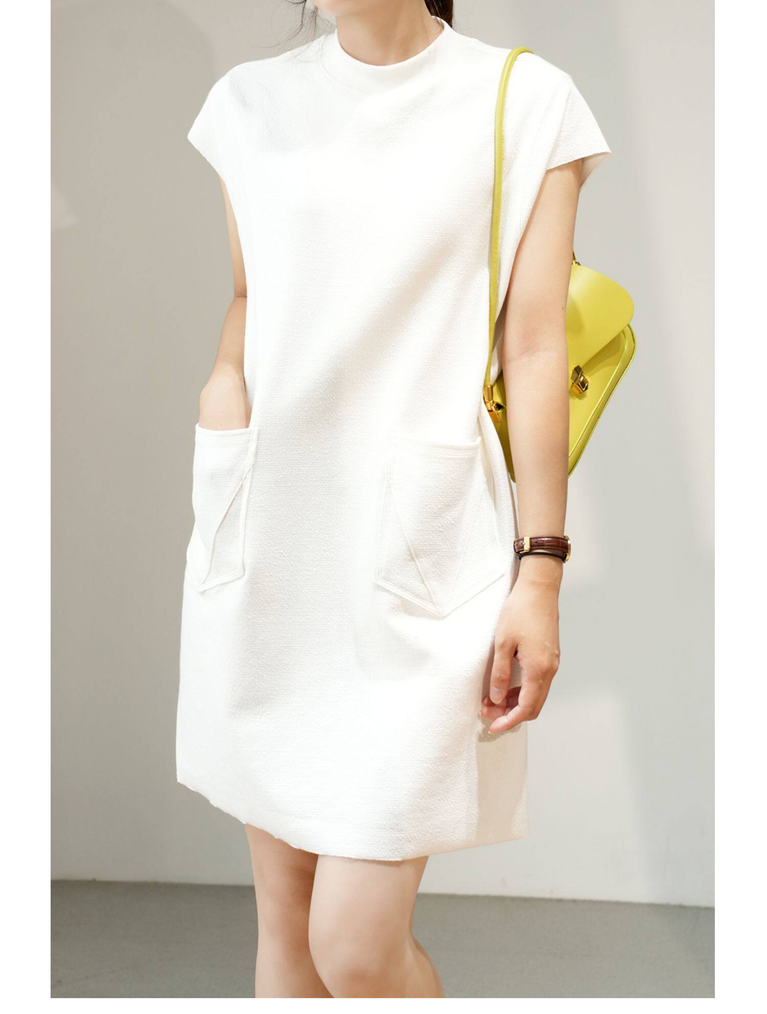 Небольшое дизайнерское белое платье без рукавов, юбка, тренд сезона, свободный прямой крой