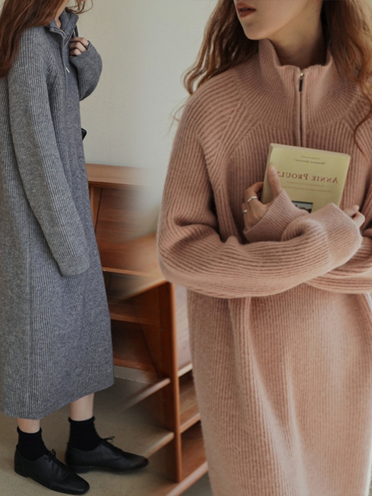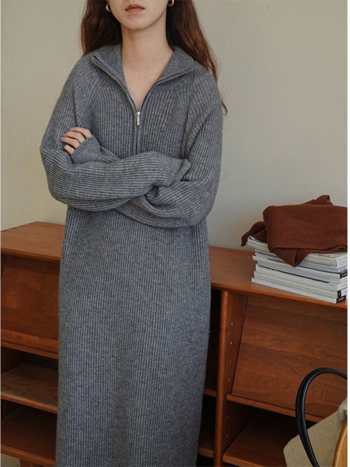 Демисезонное однотонное длинное трикотажное шерстяное платье, средней длины, увеличенная толщина