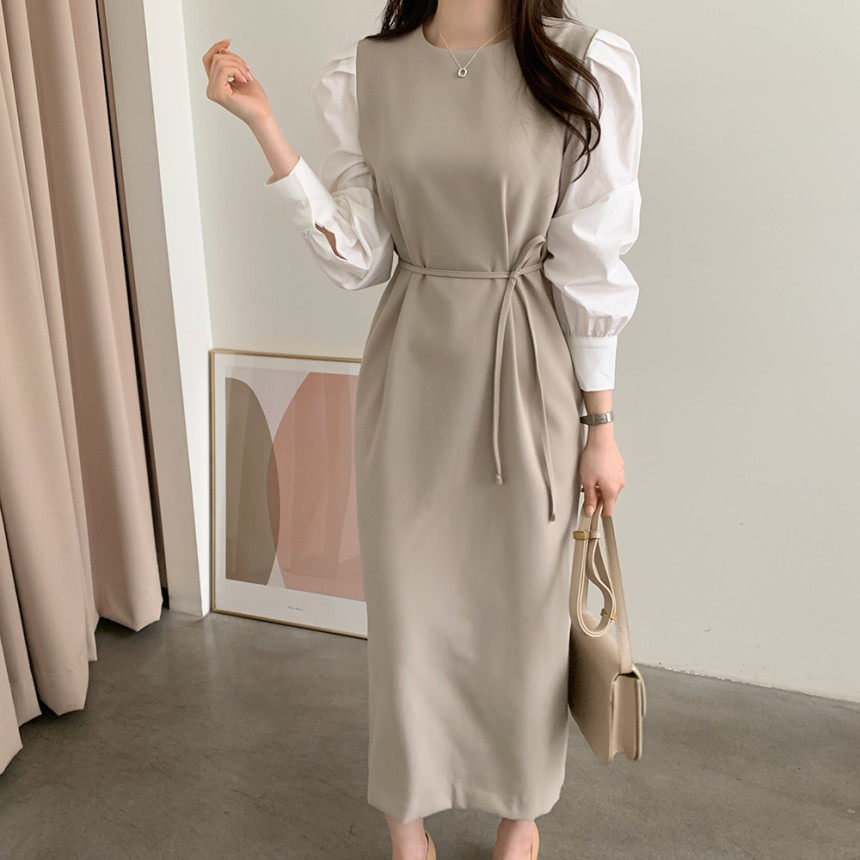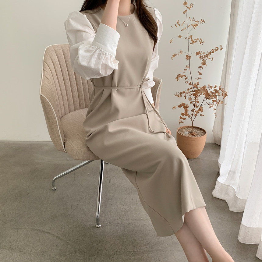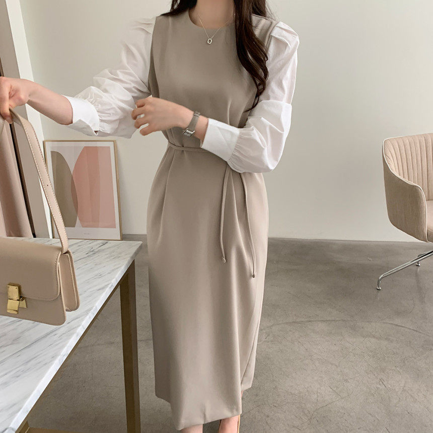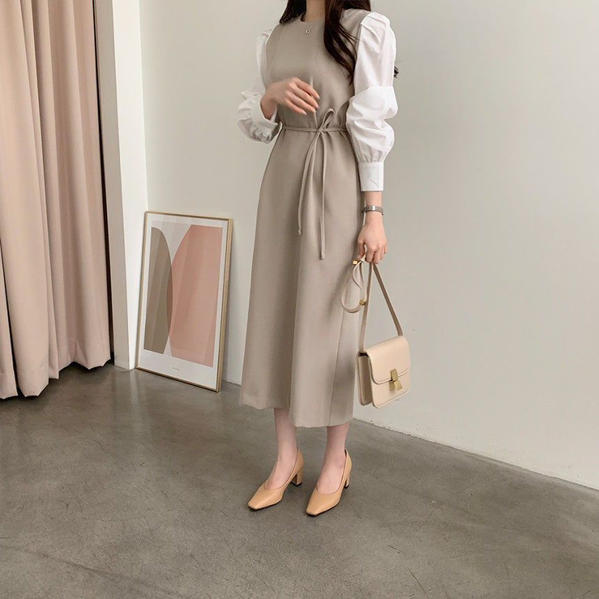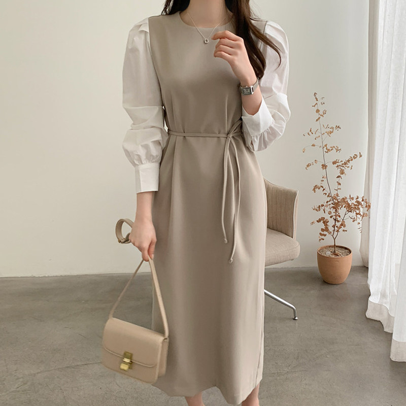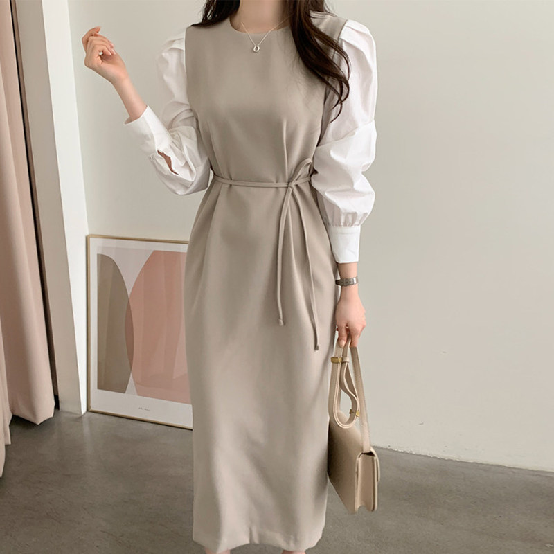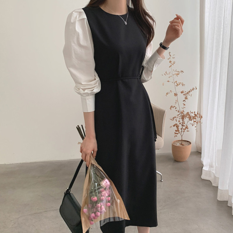 Элегантный приталенный корсет с круглым воротником, платье, юбка, в корейском стиле, осенний, французский стиль