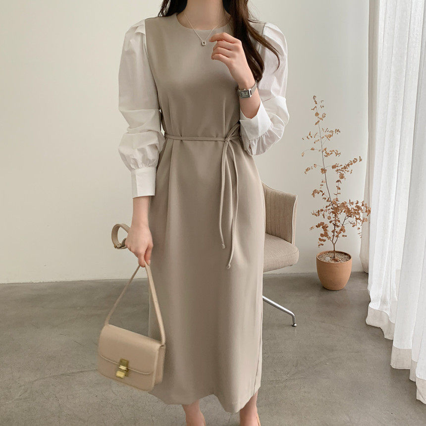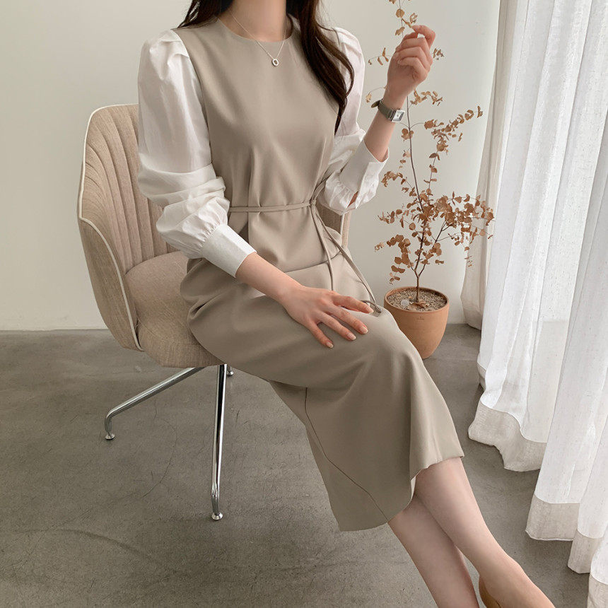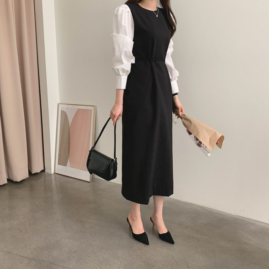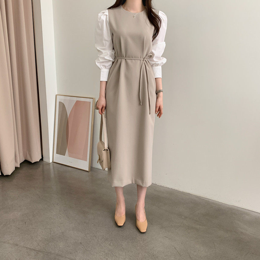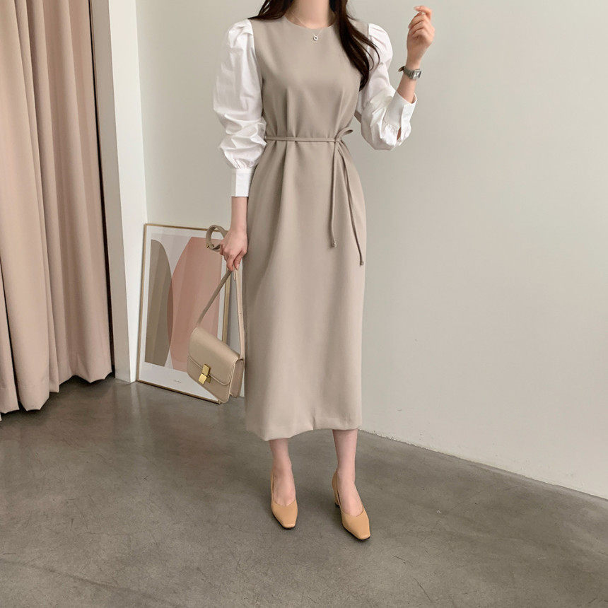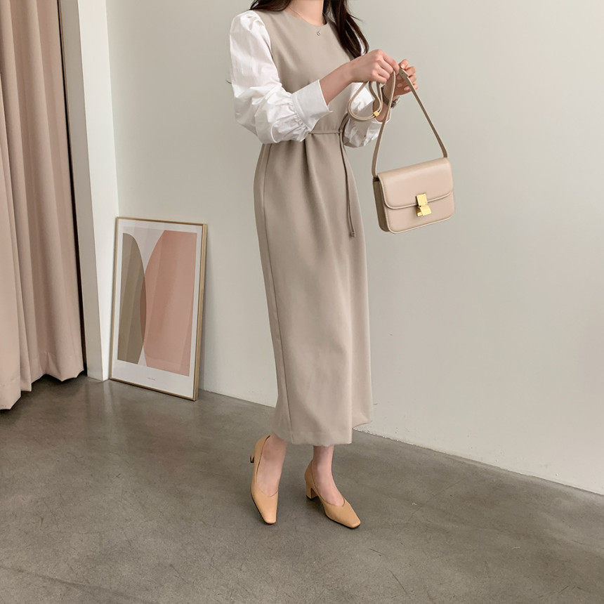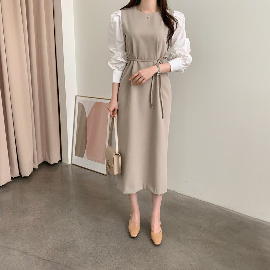 Элегантный приталенный корсет с круглым воротником, платье, юбка, в корейском стиле, осенний, французский стиль