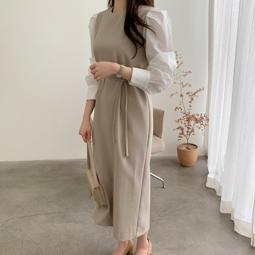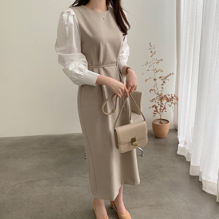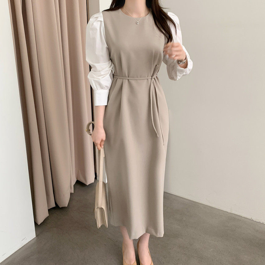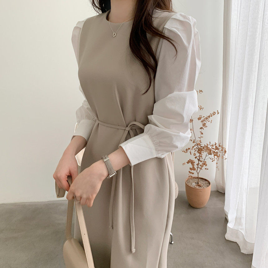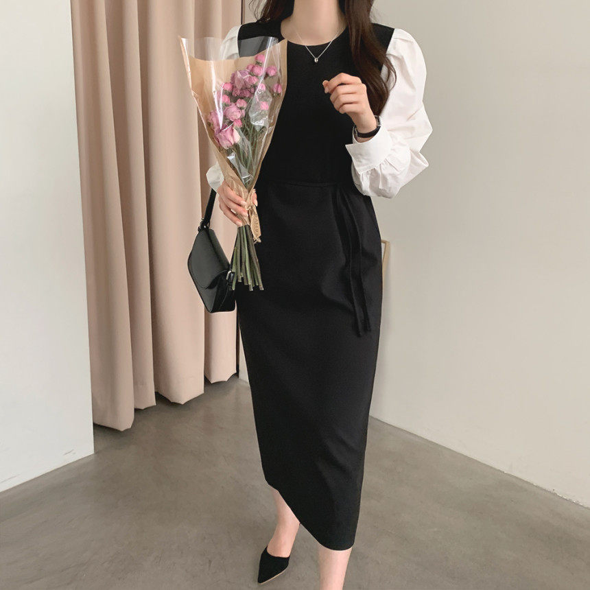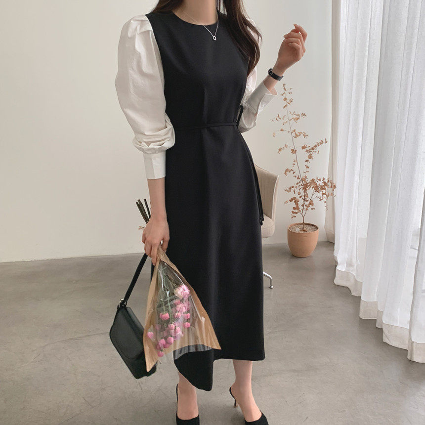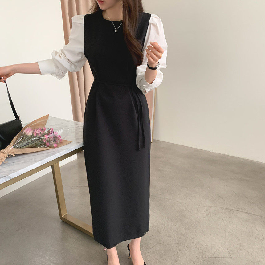 Элегантный приталенный корсет с круглым воротником, платье, юбка, в корейском стиле, осенний, французский стиль