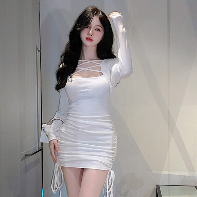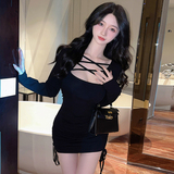 Сексуальное весеннее платье, приталенный корсет, короткая барсетка, французский стиль, в западном стиле, на шнурках, с акцентом на бедрах