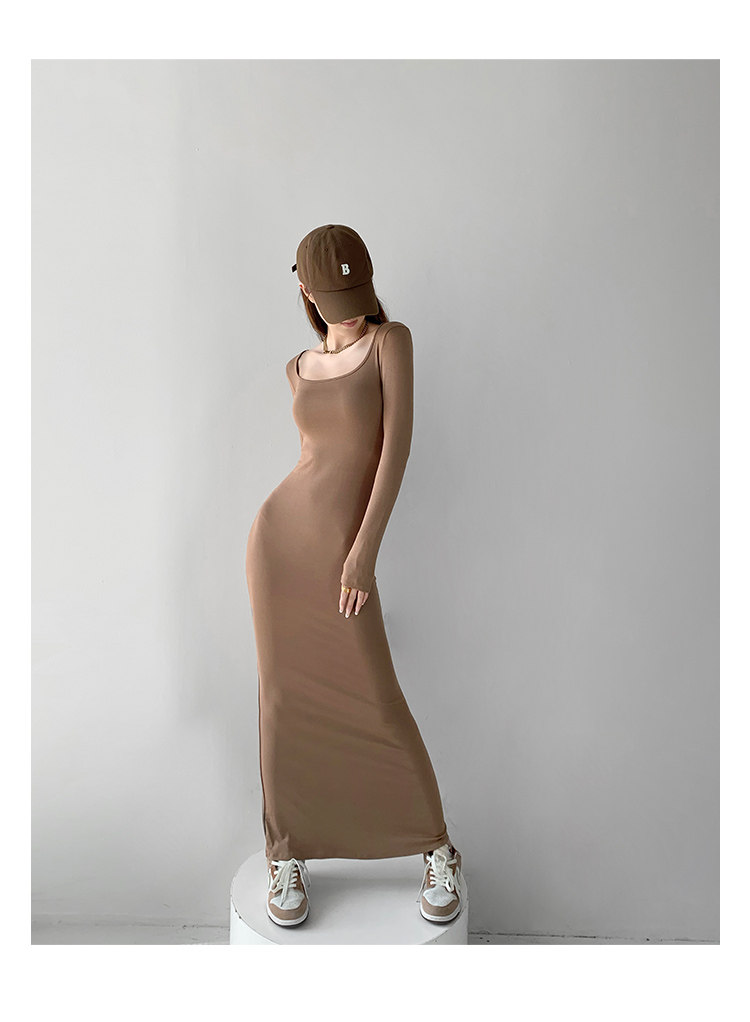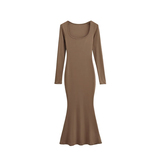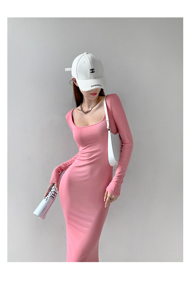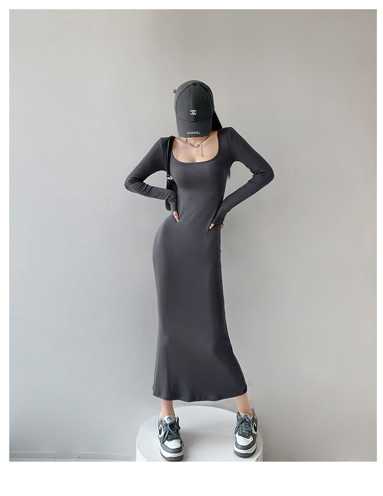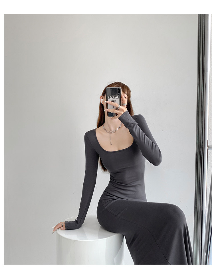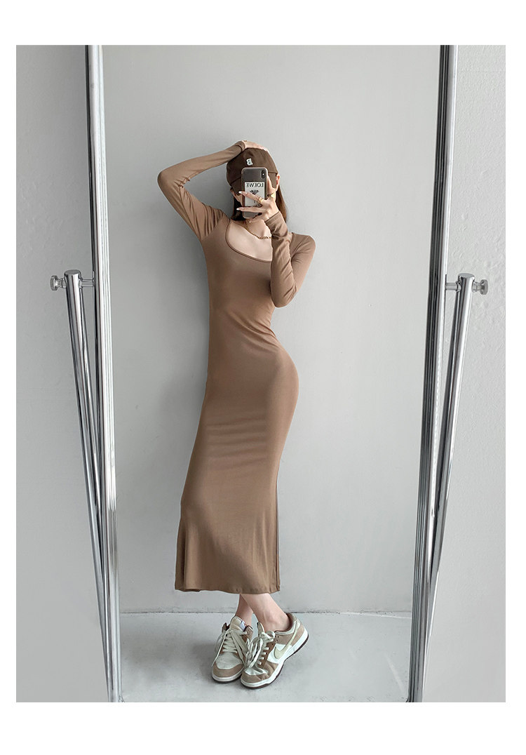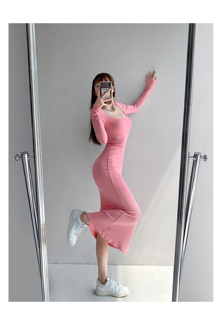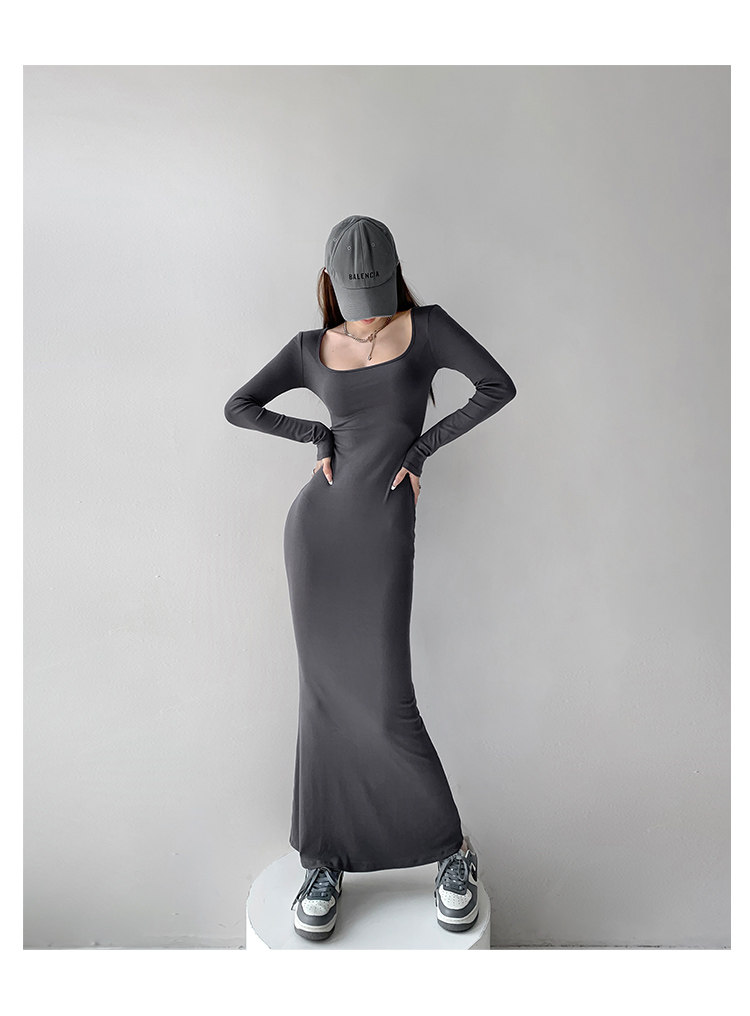 Сексуальный осенний цветной лонгслив, длинная юбка, европейский стиль, в обтяжку, квадратный вырез, с рукавом