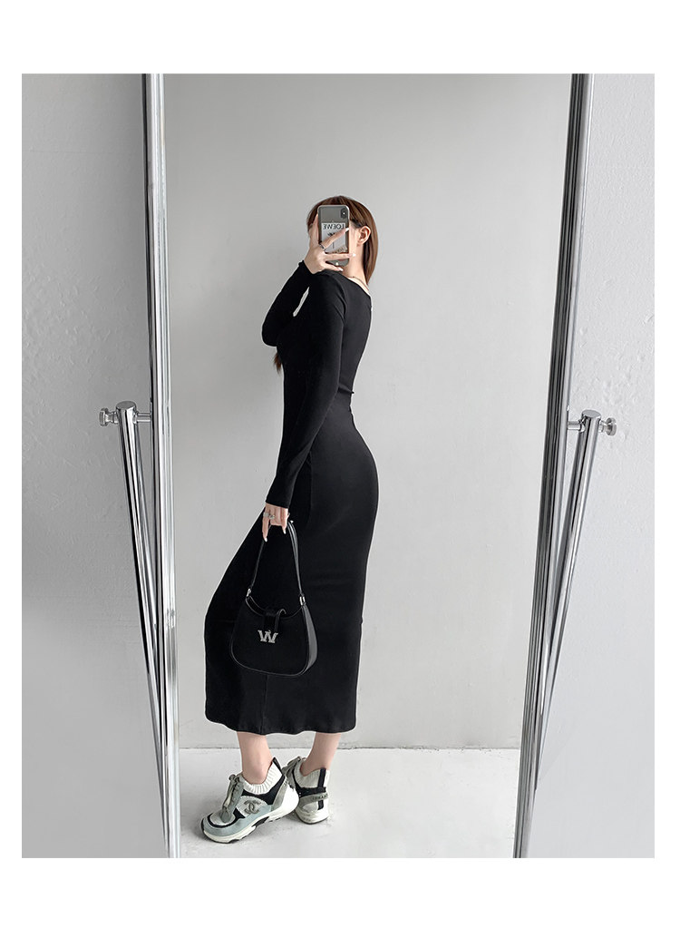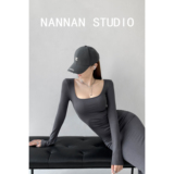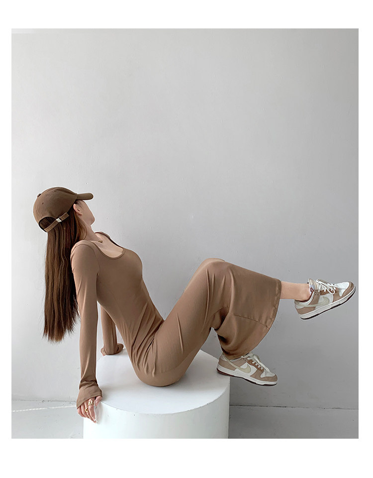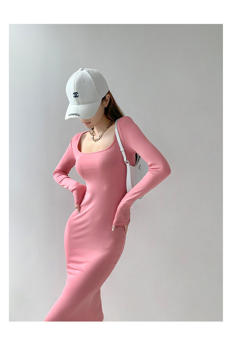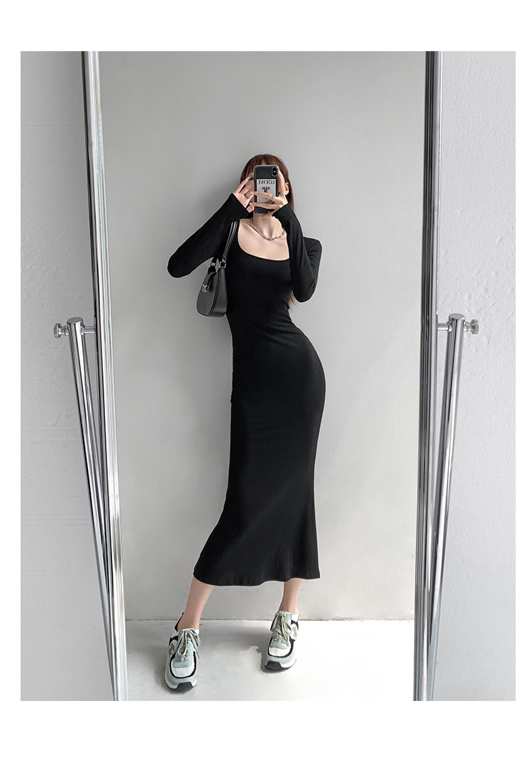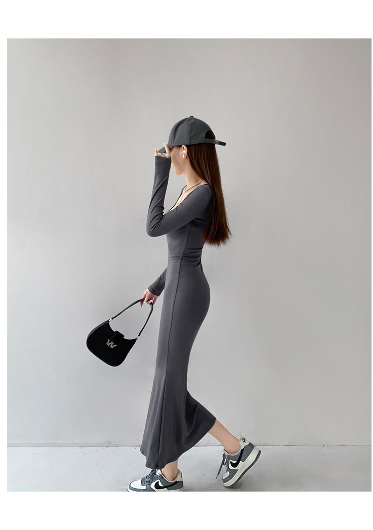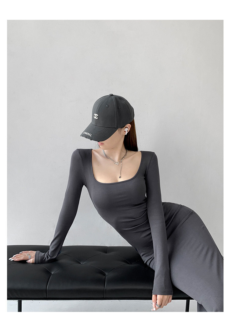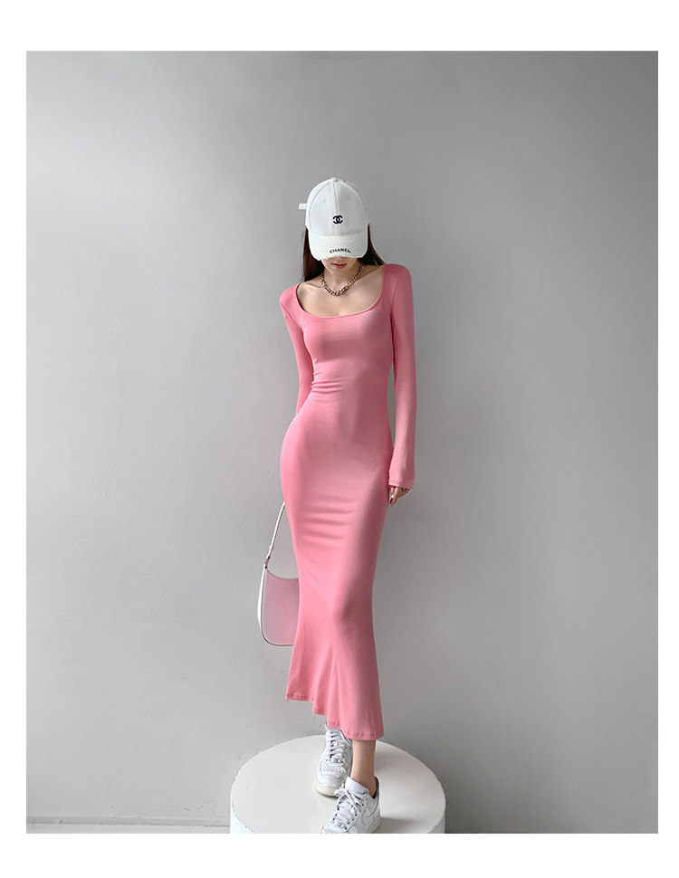 Сексуальный осенний цветной лонгслив, длинная юбка, европейский стиль, в обтяжку, квадратный вырез, с рукавом