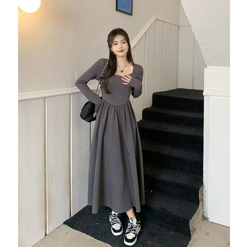 Осенний лонгслив, осеннее платье, приталенный корсет, длинная юбка, изысканный стиль, квадратный вырез, средней длины