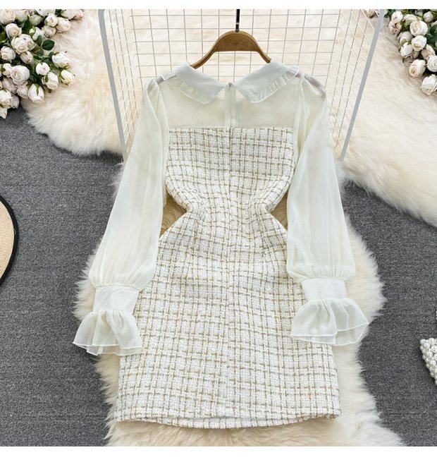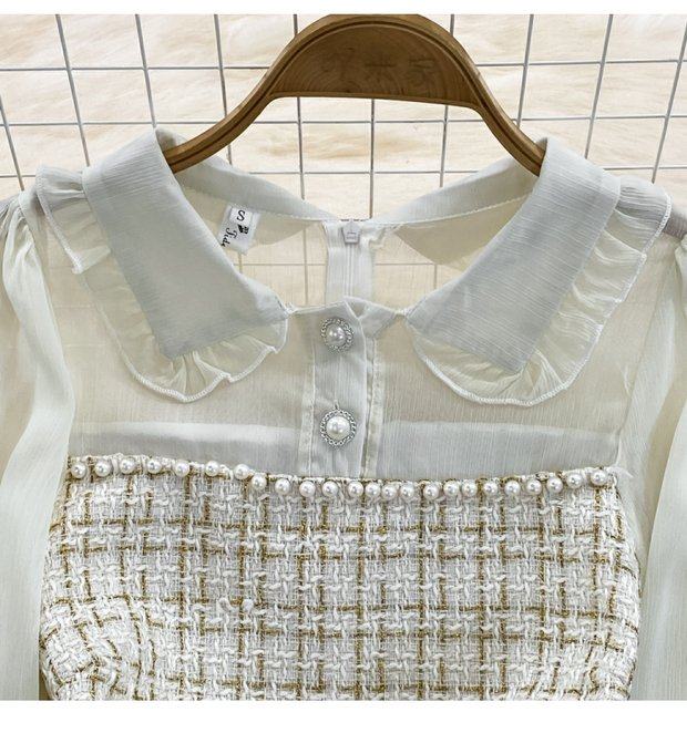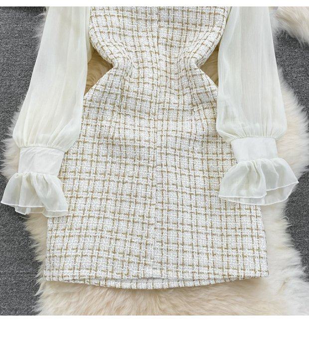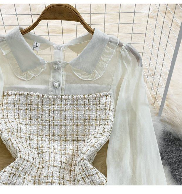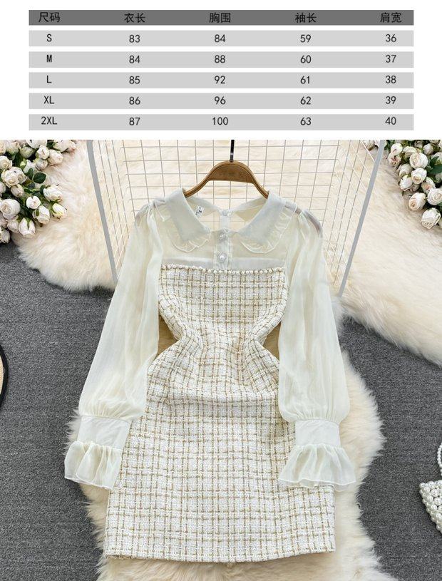 Осенний шифоновый лонгслив, корсет, платье, французский стиль, в стиле Шанель, А-силуэт