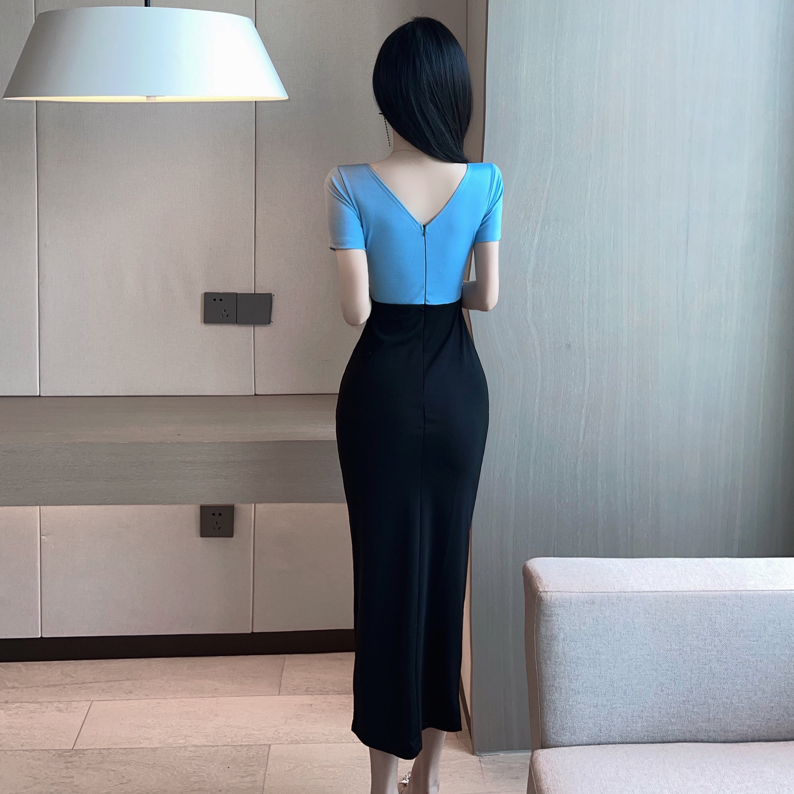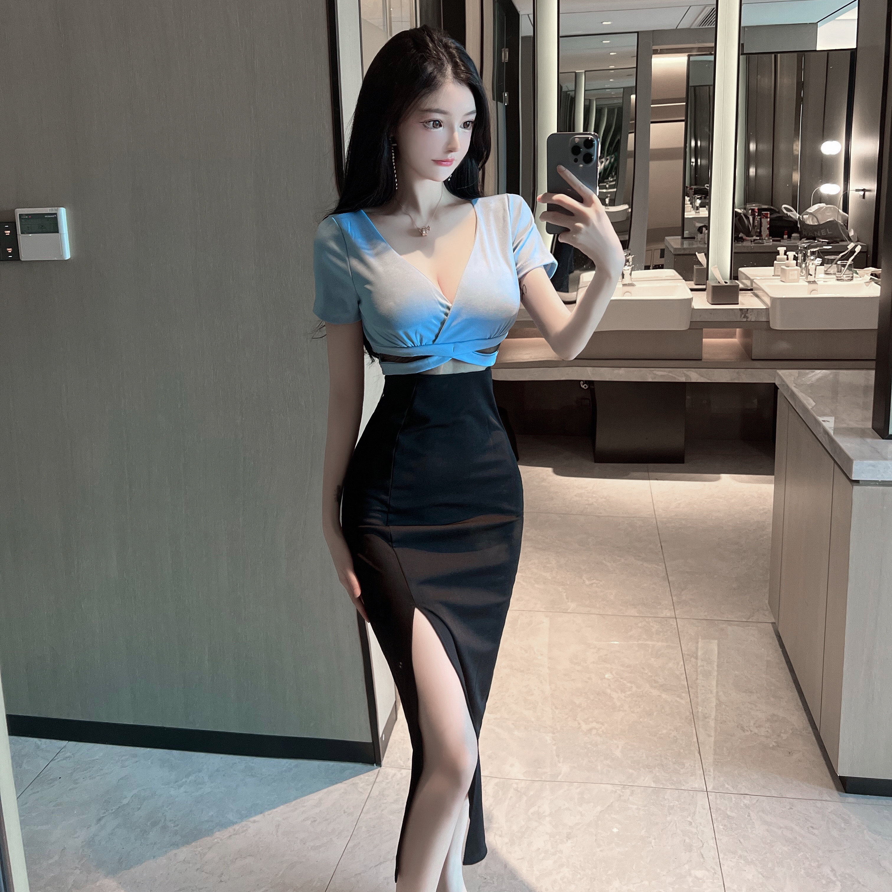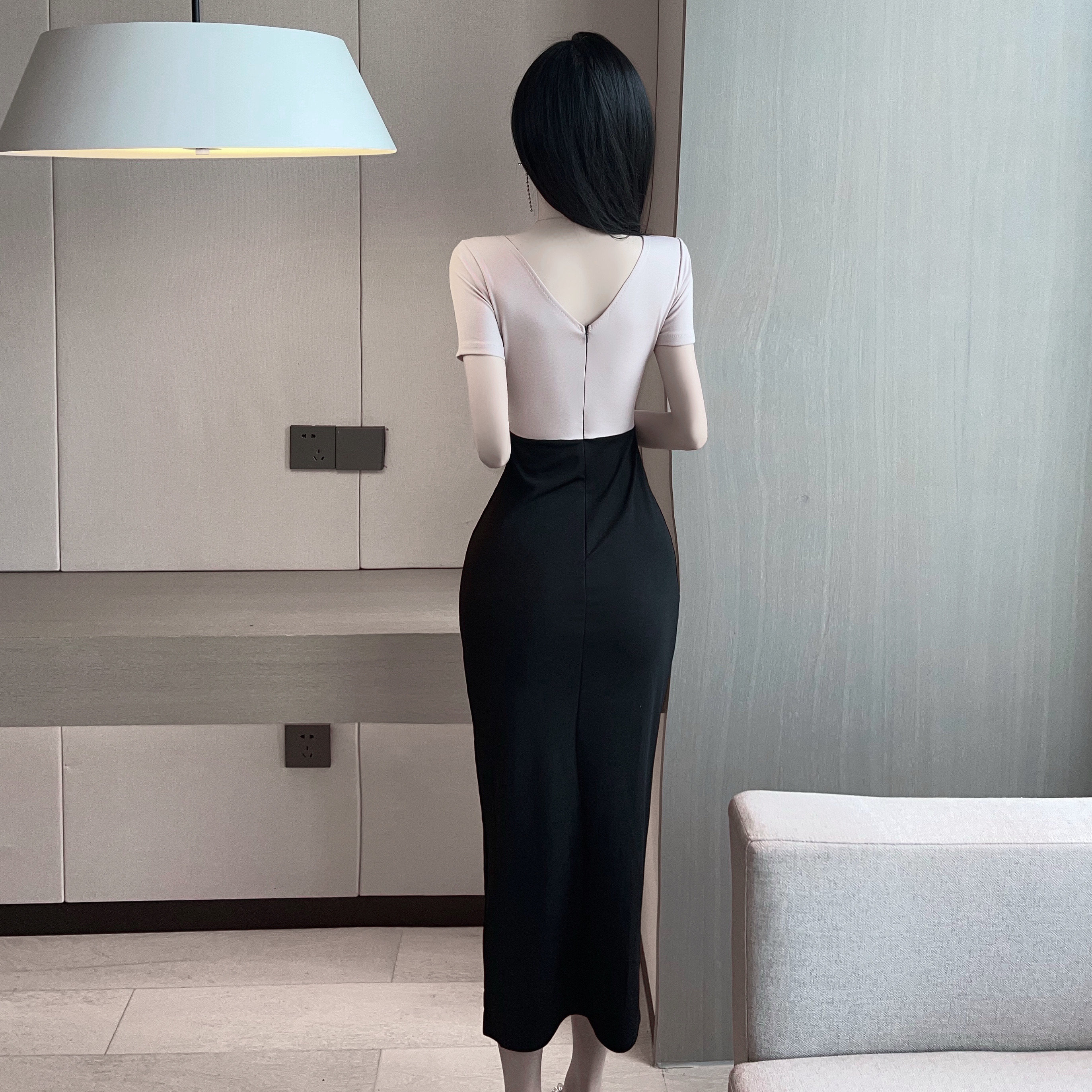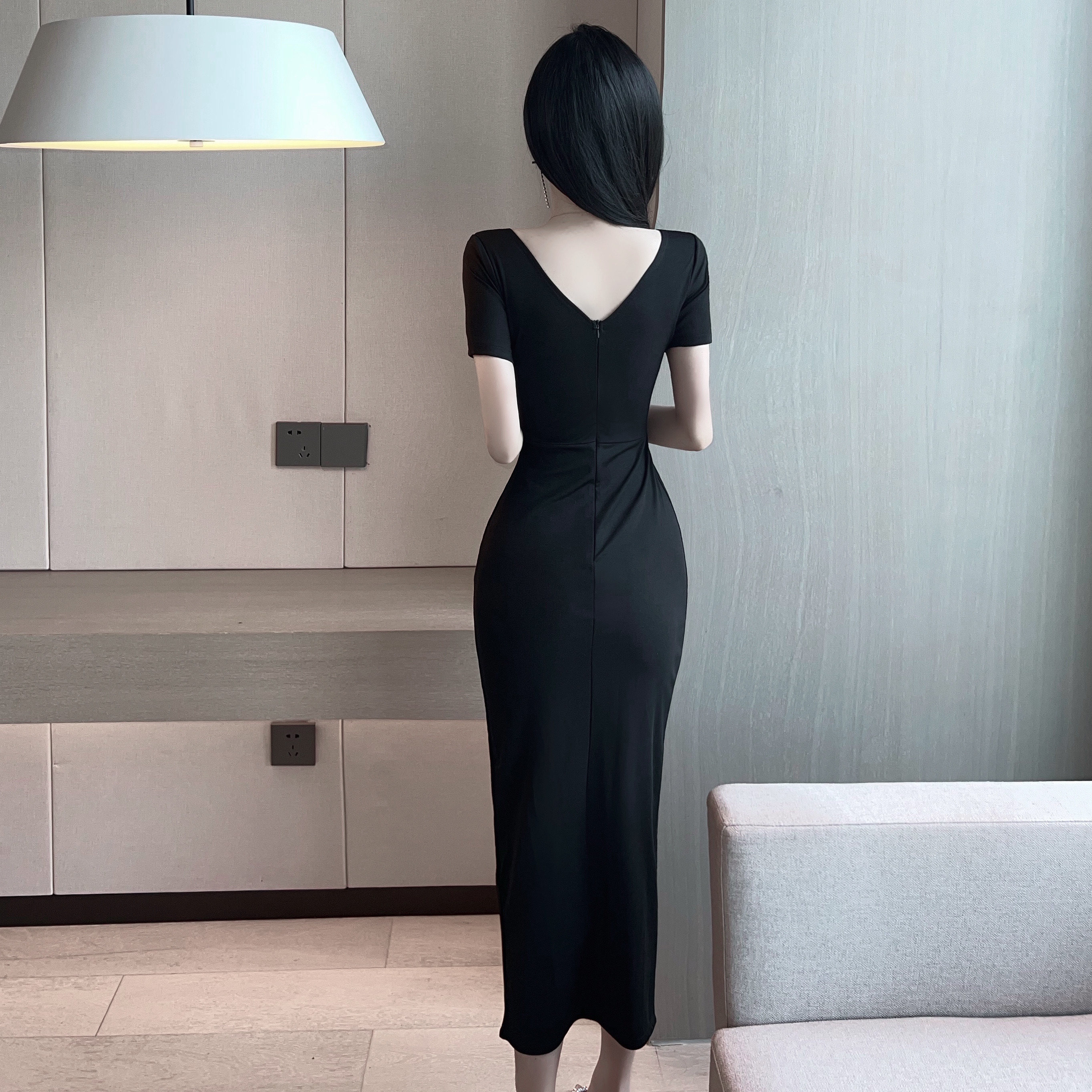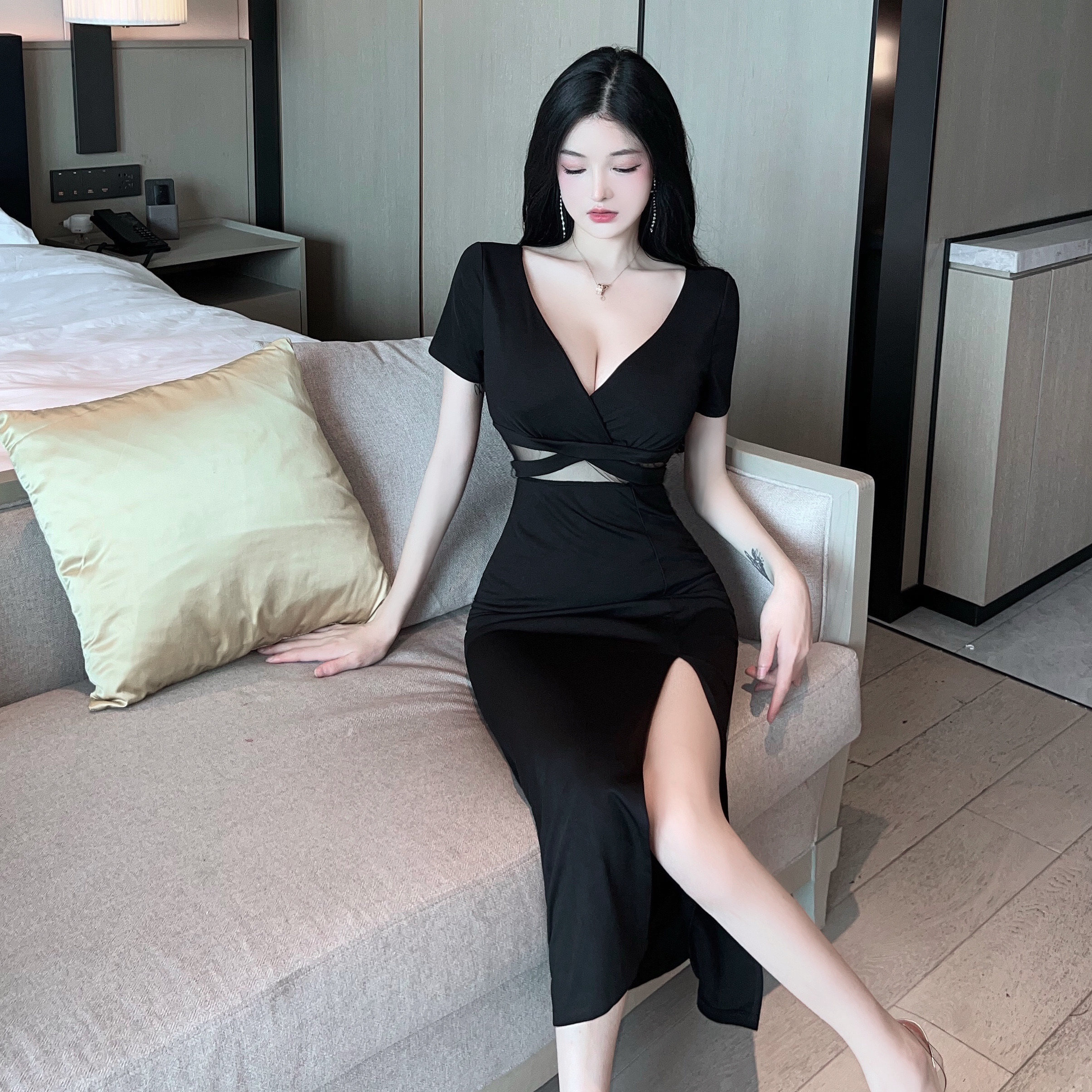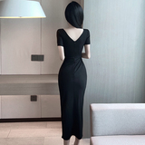 Сексуальное вечернее платье для работы, длинная юбка, V-образный вырез