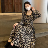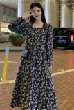 Осеннее ретро дизайнерское платье, большой размер, 2023, французский ретро стиль, по фигуре, цветочный принт, тренд сезона