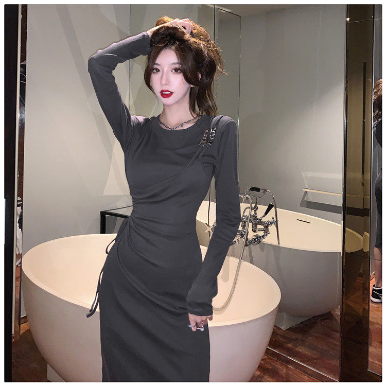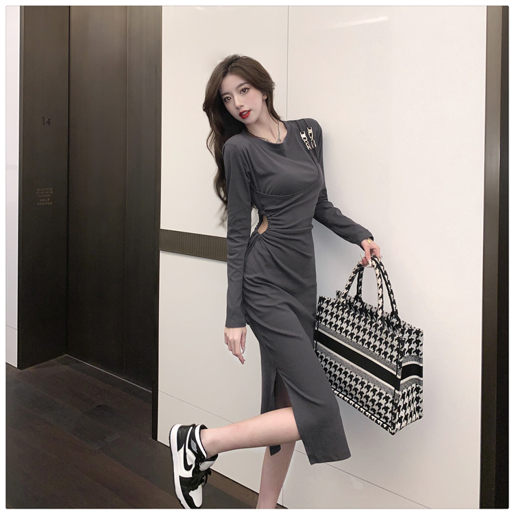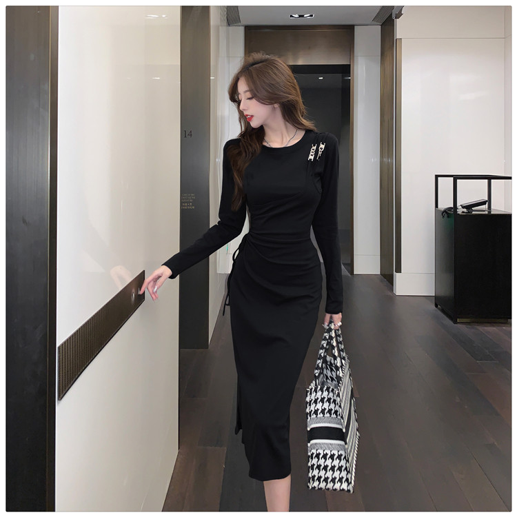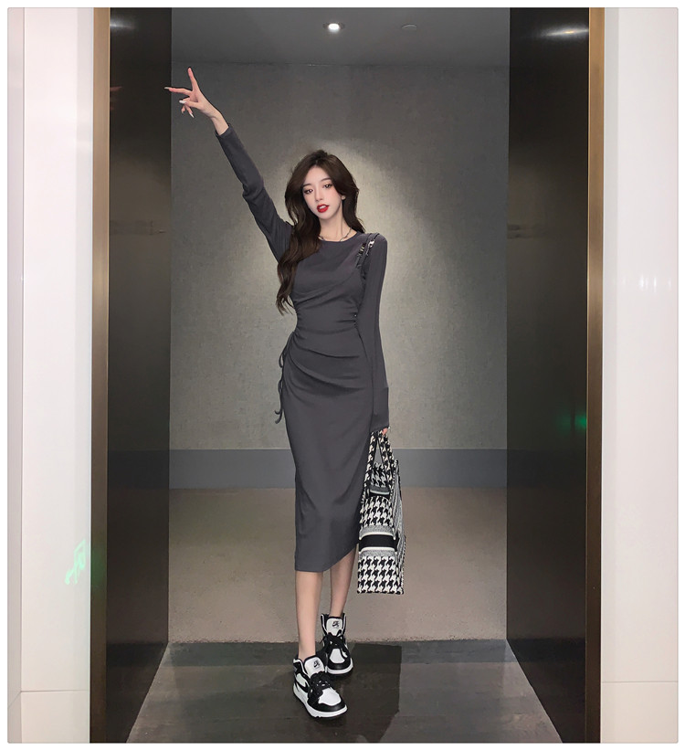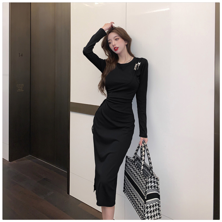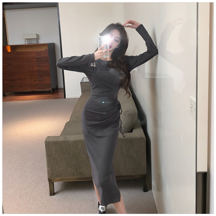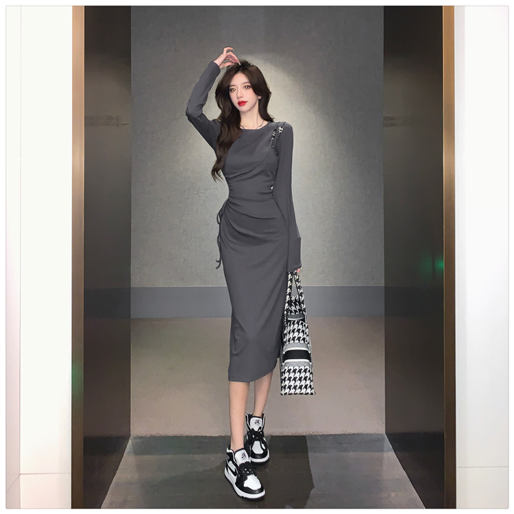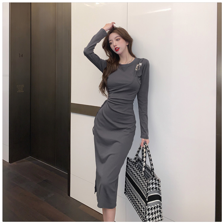 Комплект, осенний лонгслив, платье, приталенная длинная юбка, городской стиль, с акцентом на бедрах
