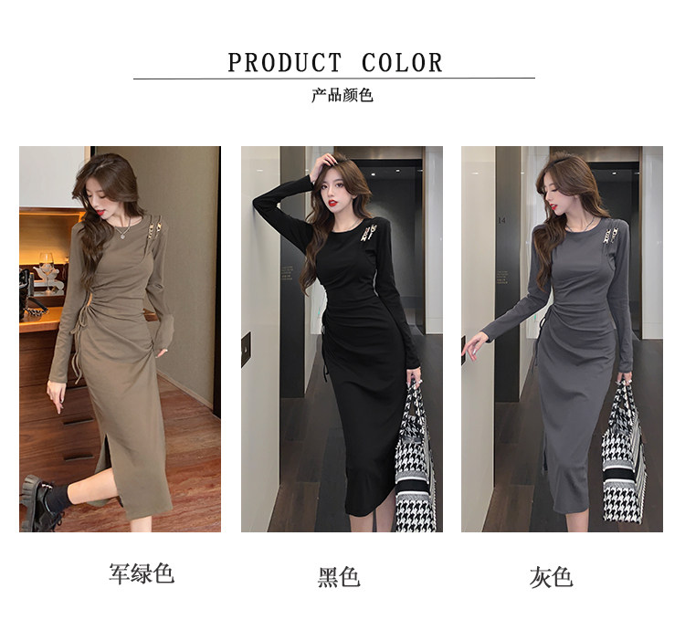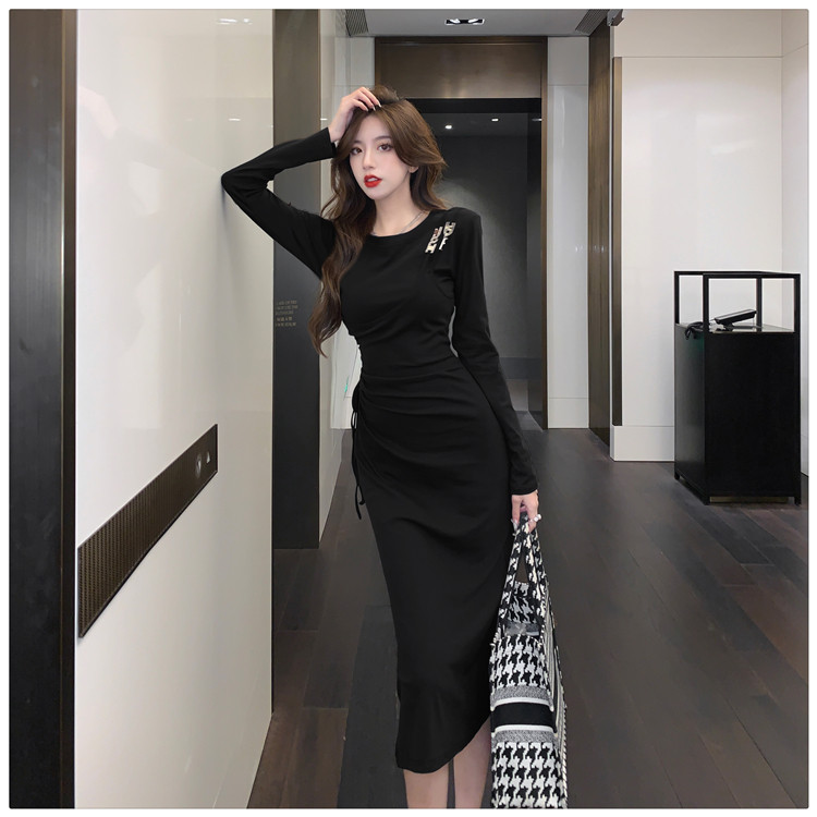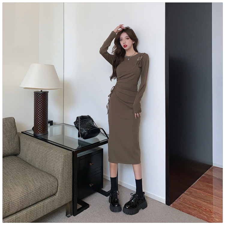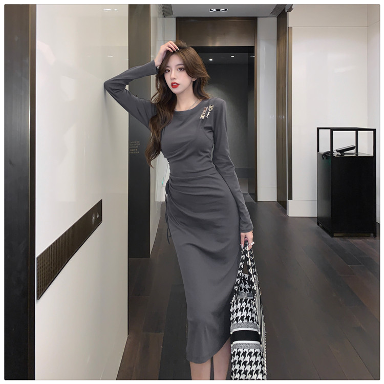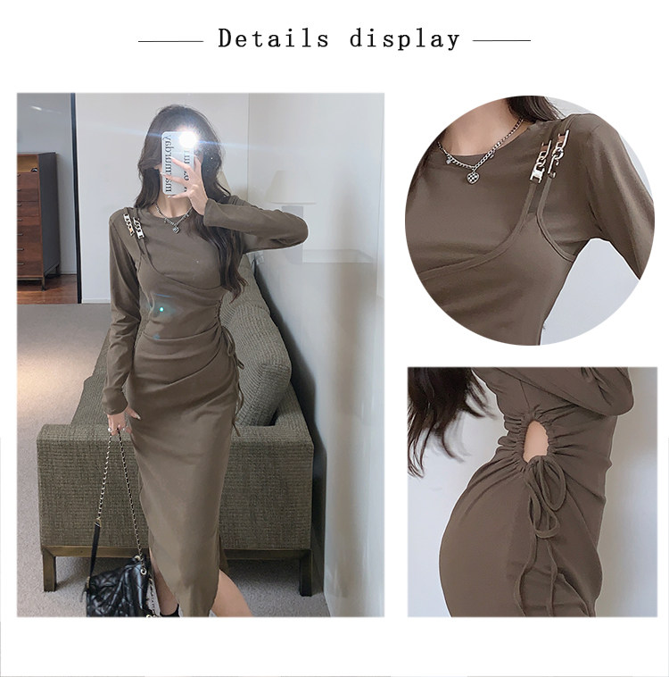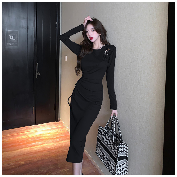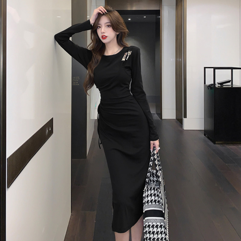 Комплект, осенний лонгслив, платье, приталенная длинная юбка, городской стиль, с акцентом на бедрах