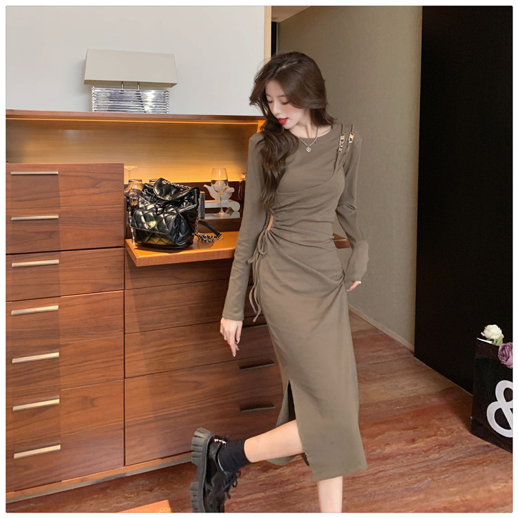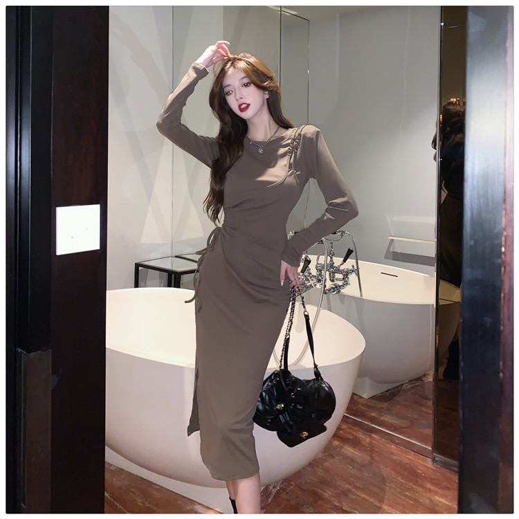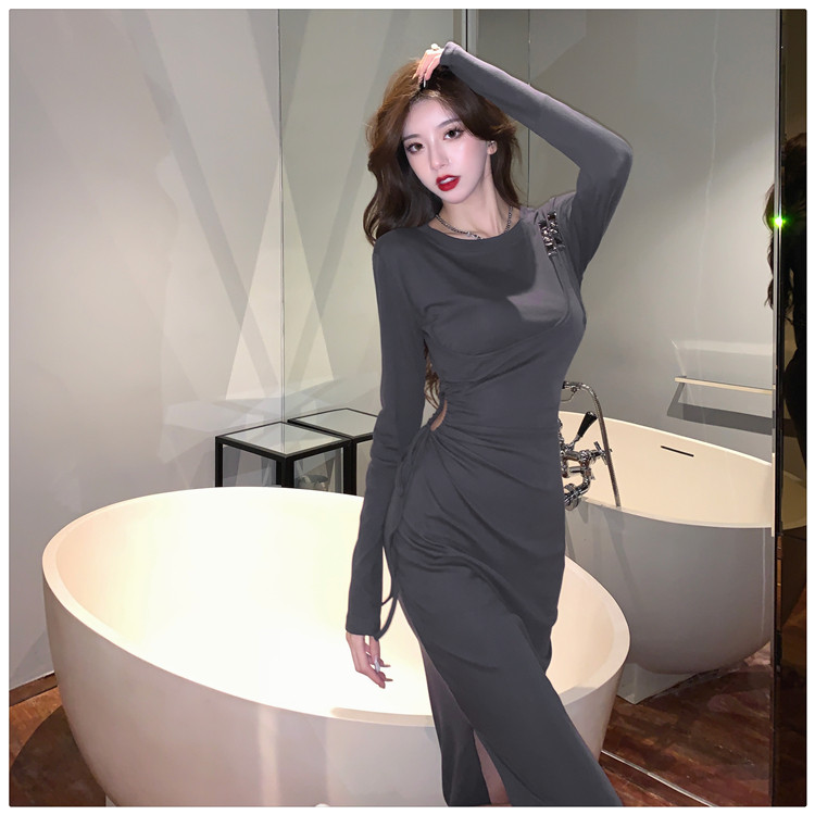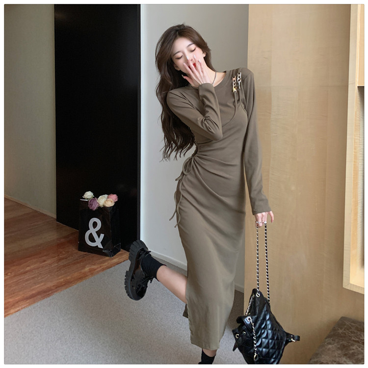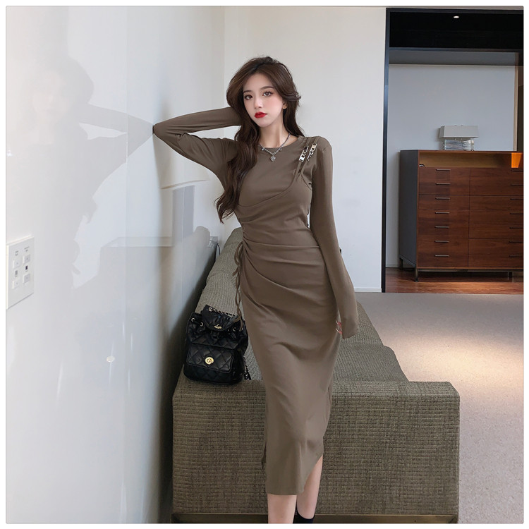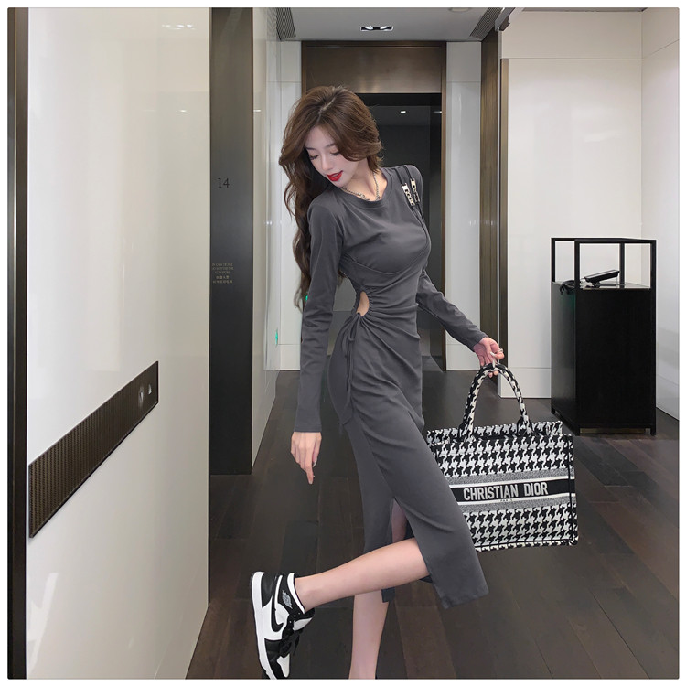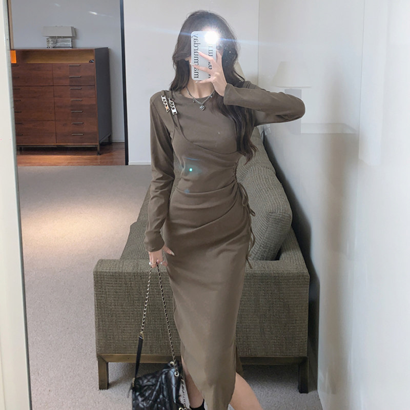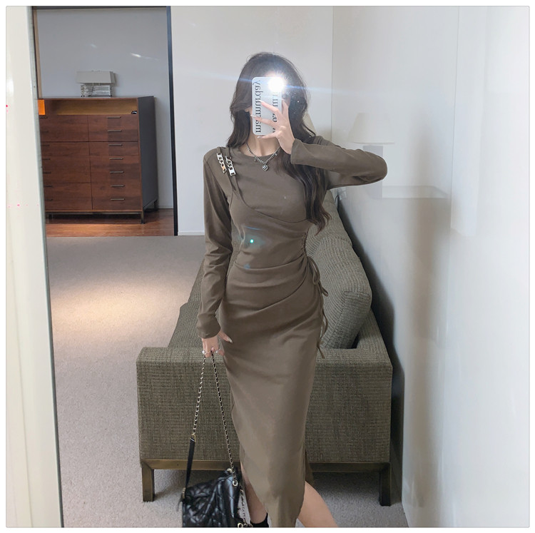 Комплект, осенний лонгслив, платье, приталенная длинная юбка, городской стиль, с акцентом на бедрах