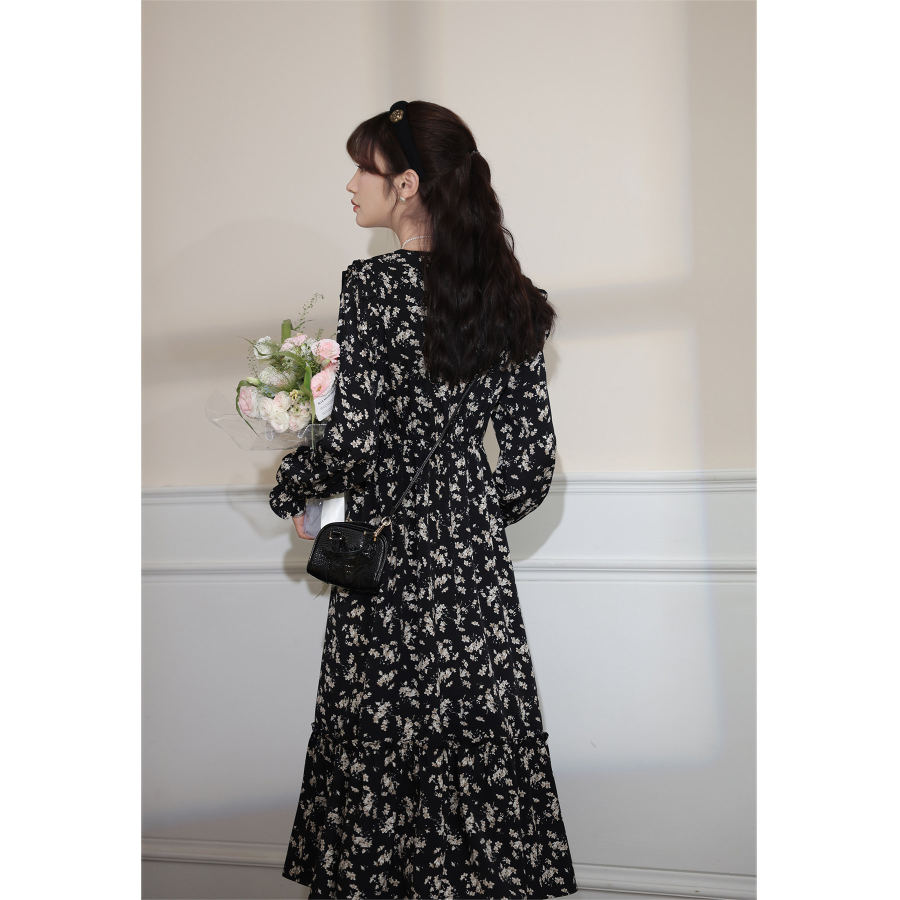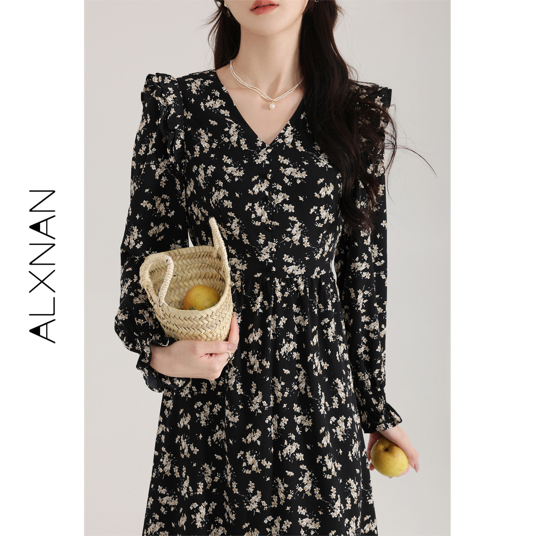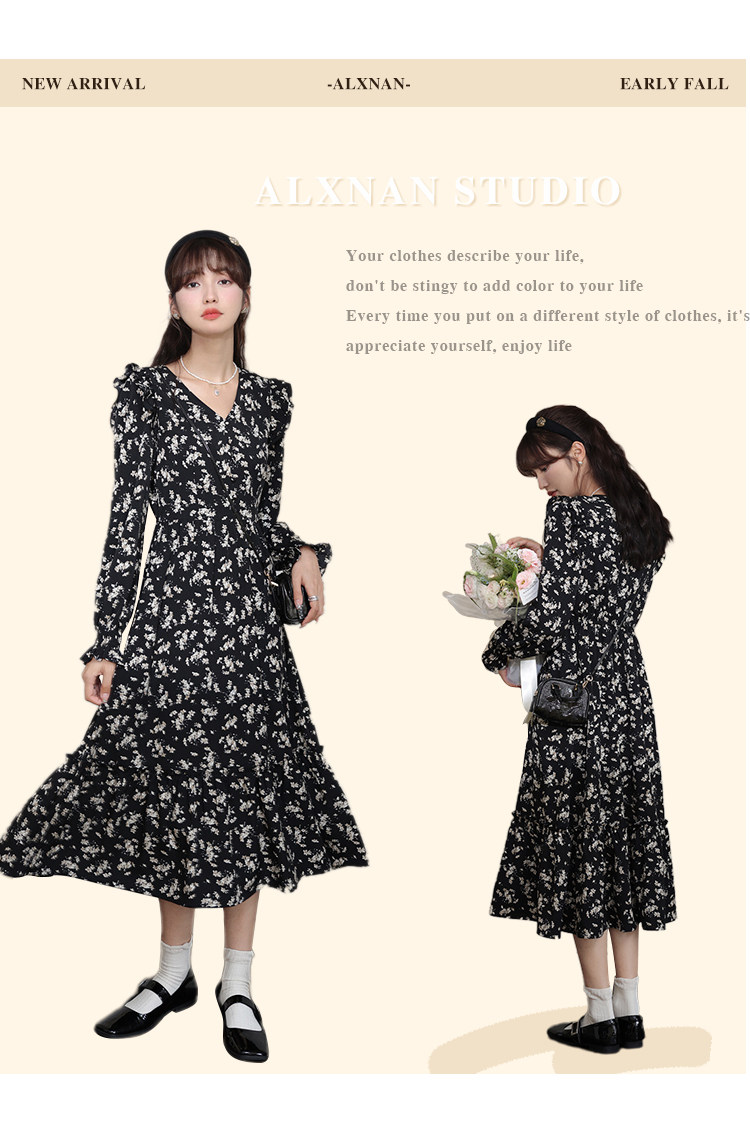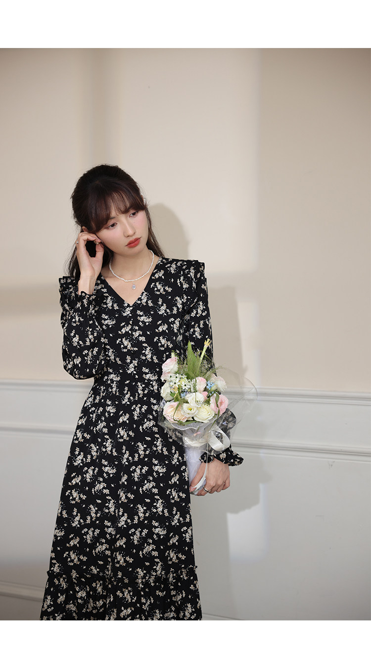 Весеннее модное ретро базовое платье, в цветочек, 2024 года, тренд сезона