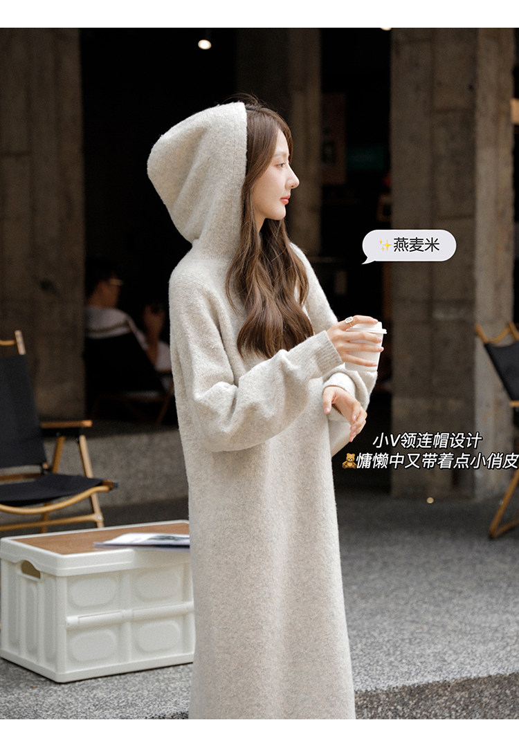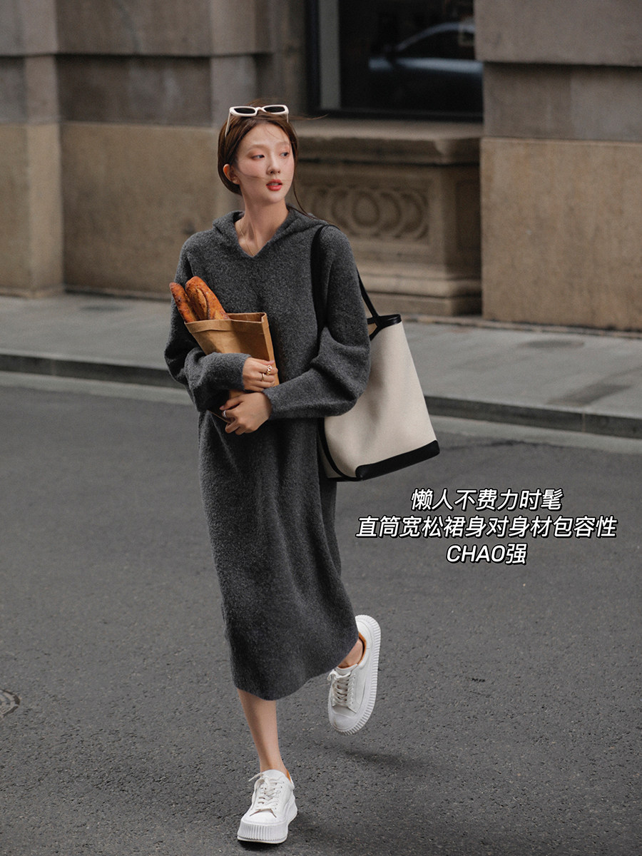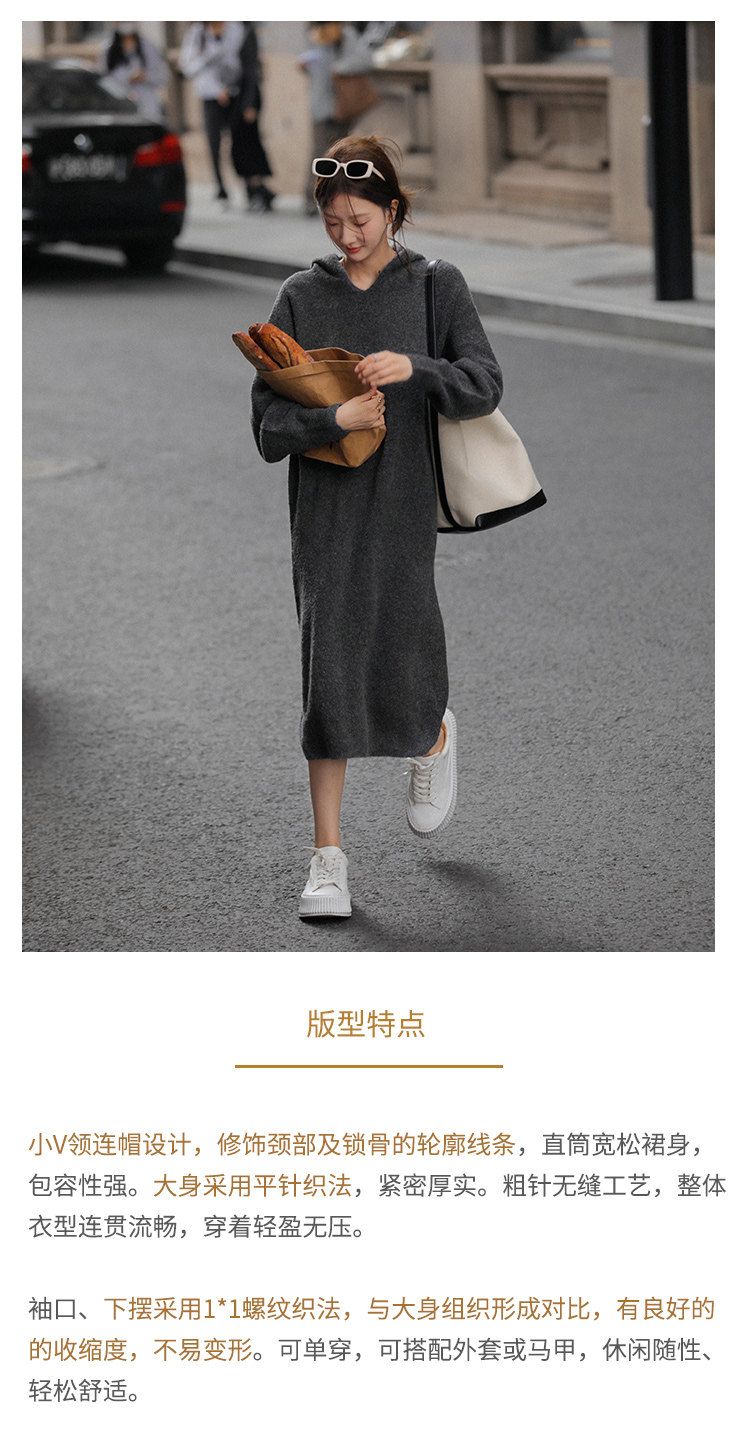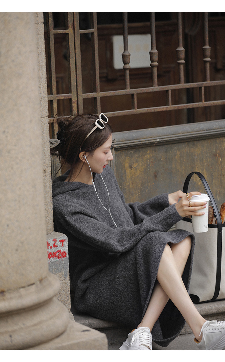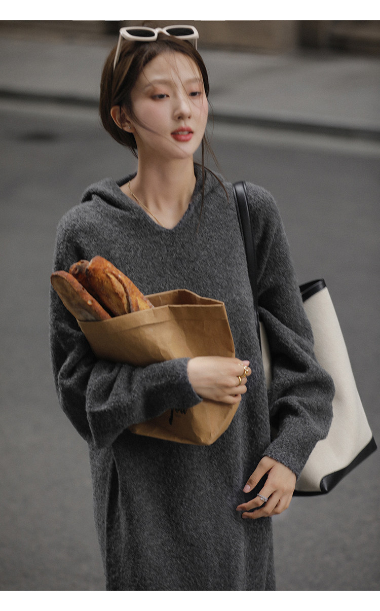 Шерстяное шерстяное платье, трикотажное платье с капюшоном, V-образный вырез
