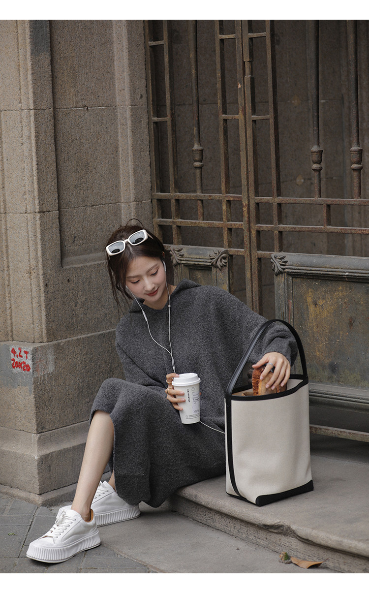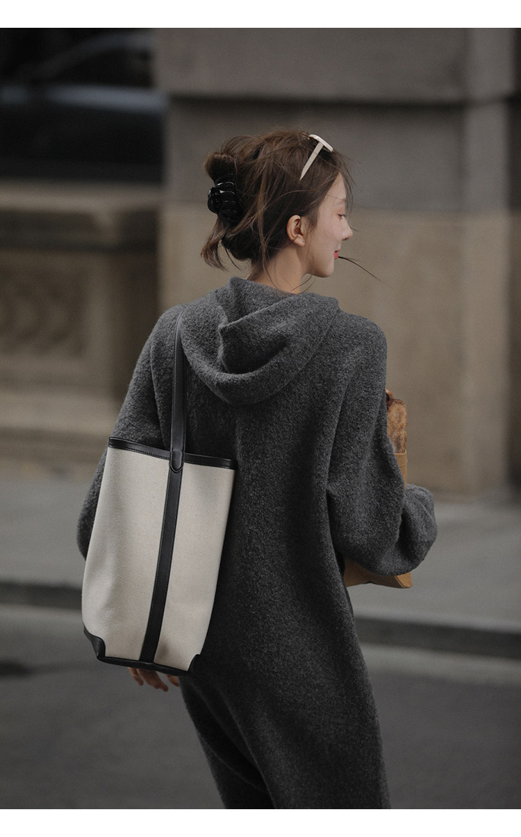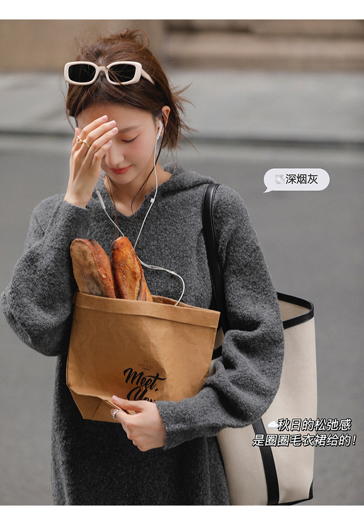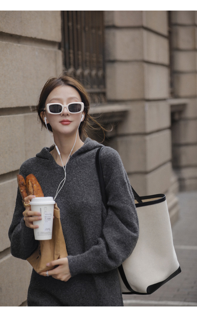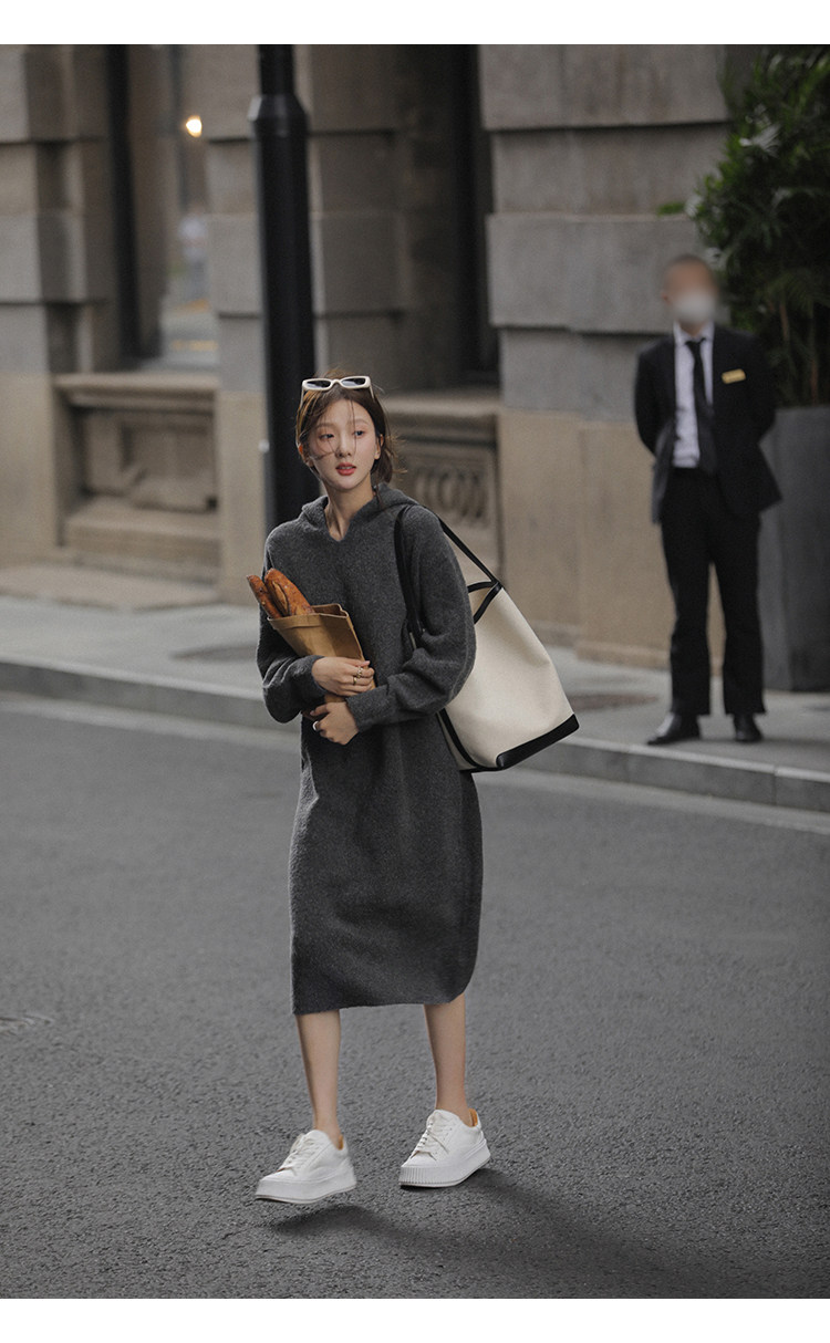 Шерстяное шерстяное платье, трикотажное платье с капюшоном, V-образный вырез