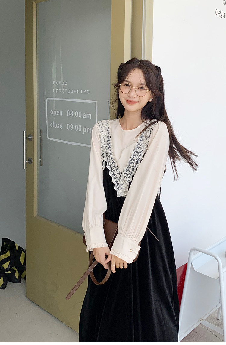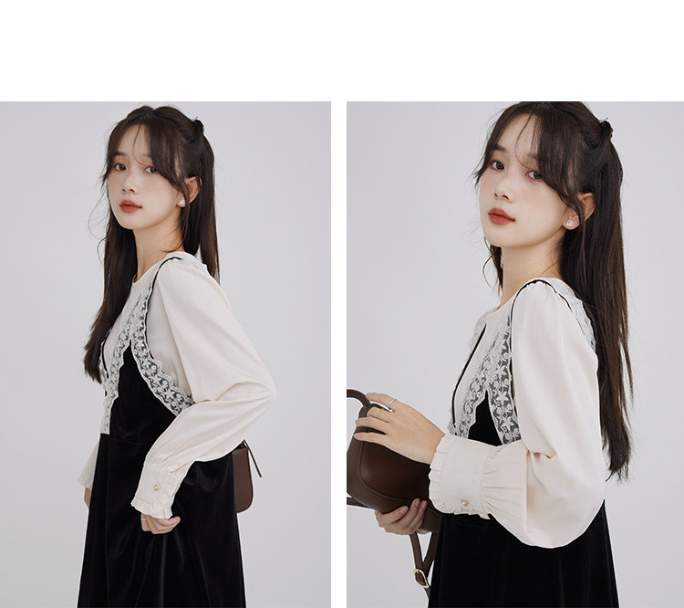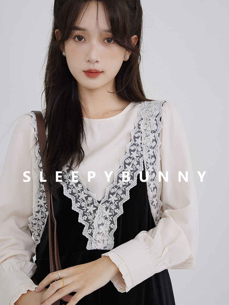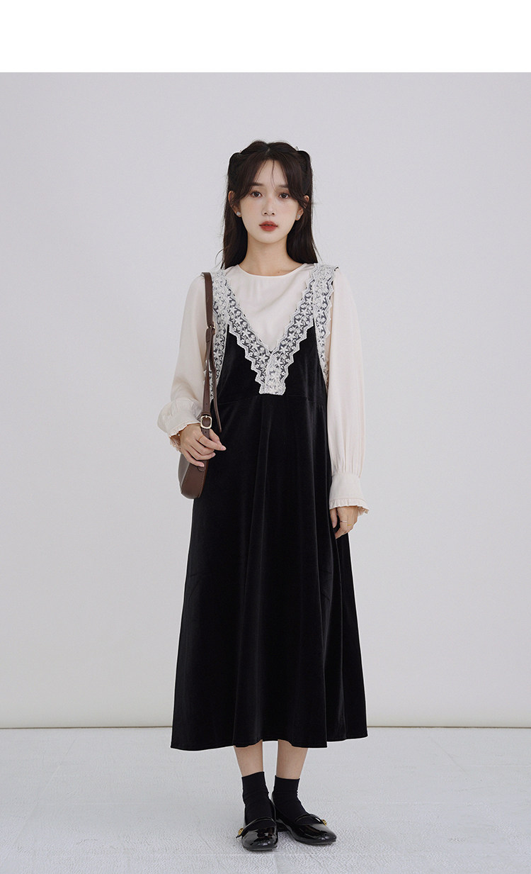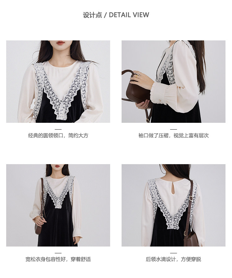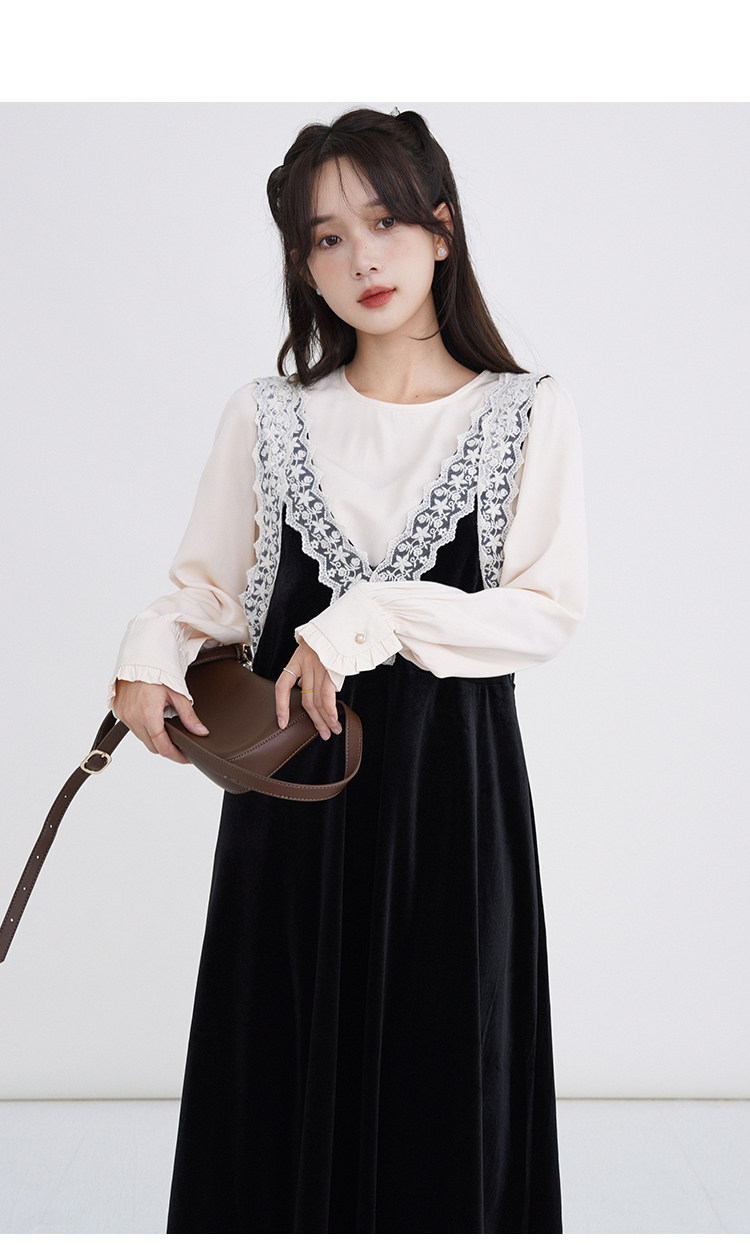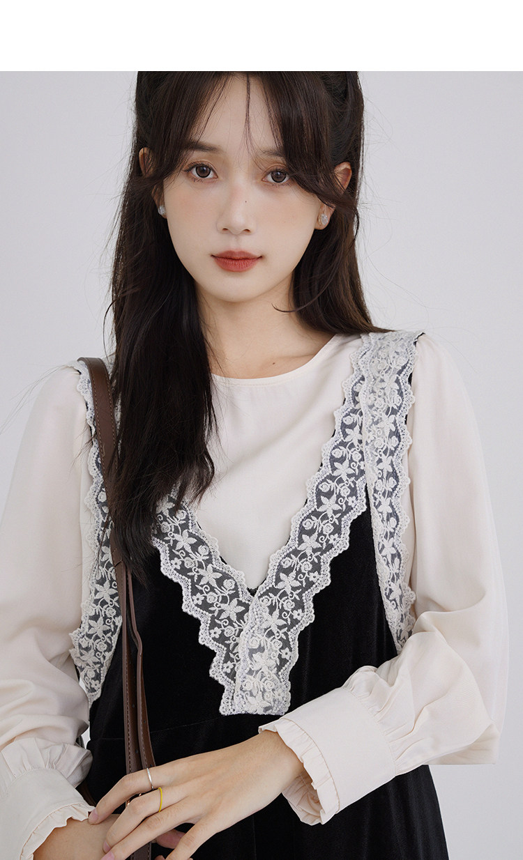 Осенняя рубашка, ретро кружевное комфортное платье, французский стиль, V-образный вырез
