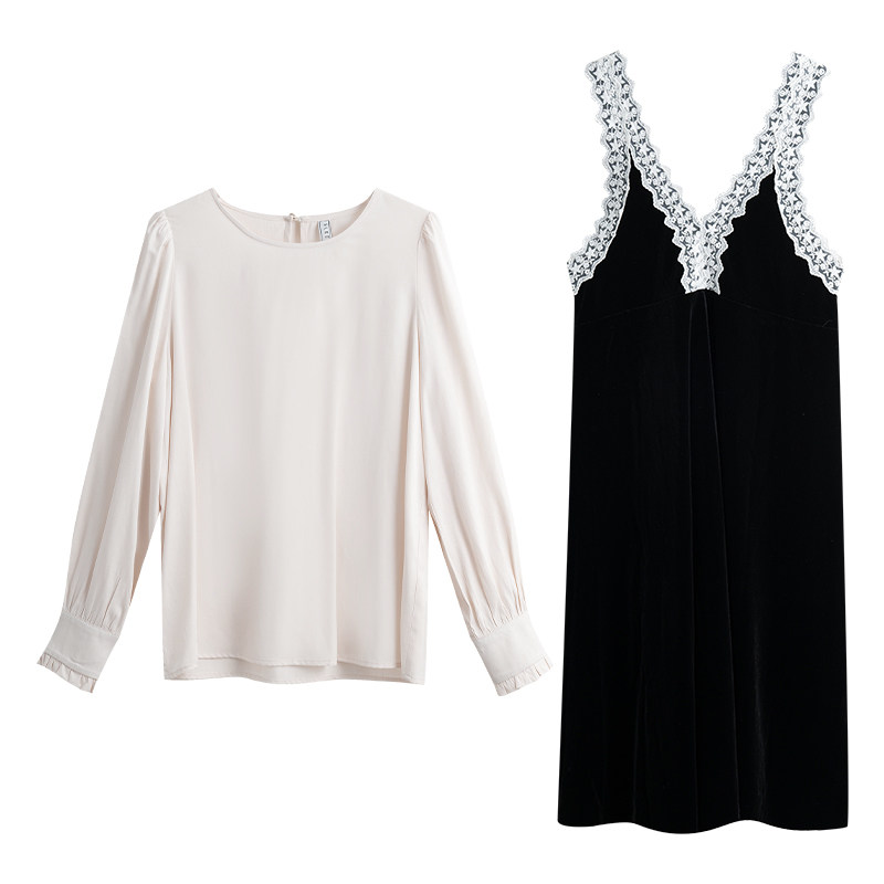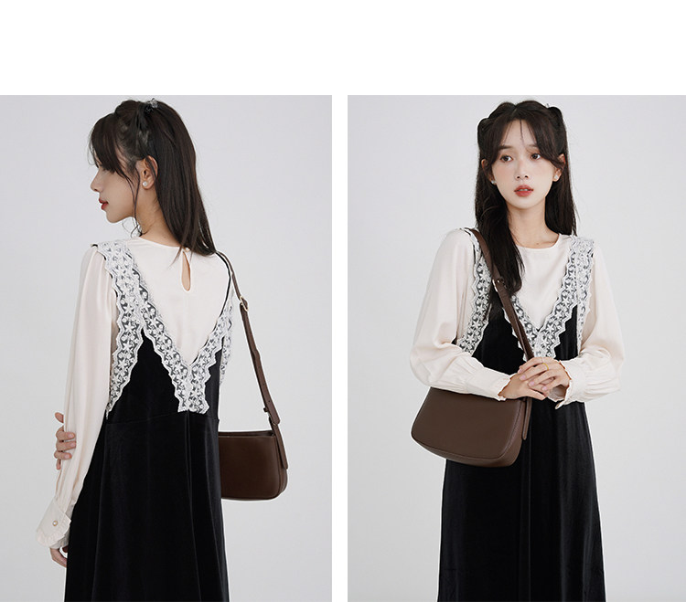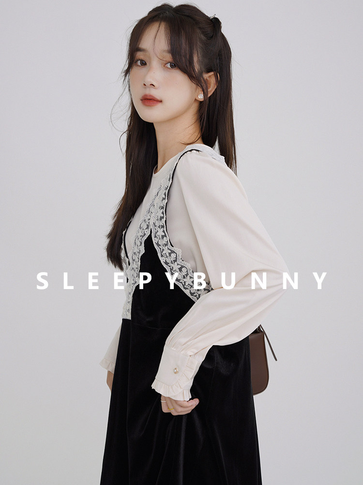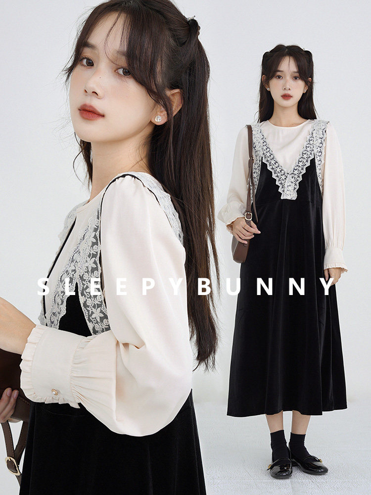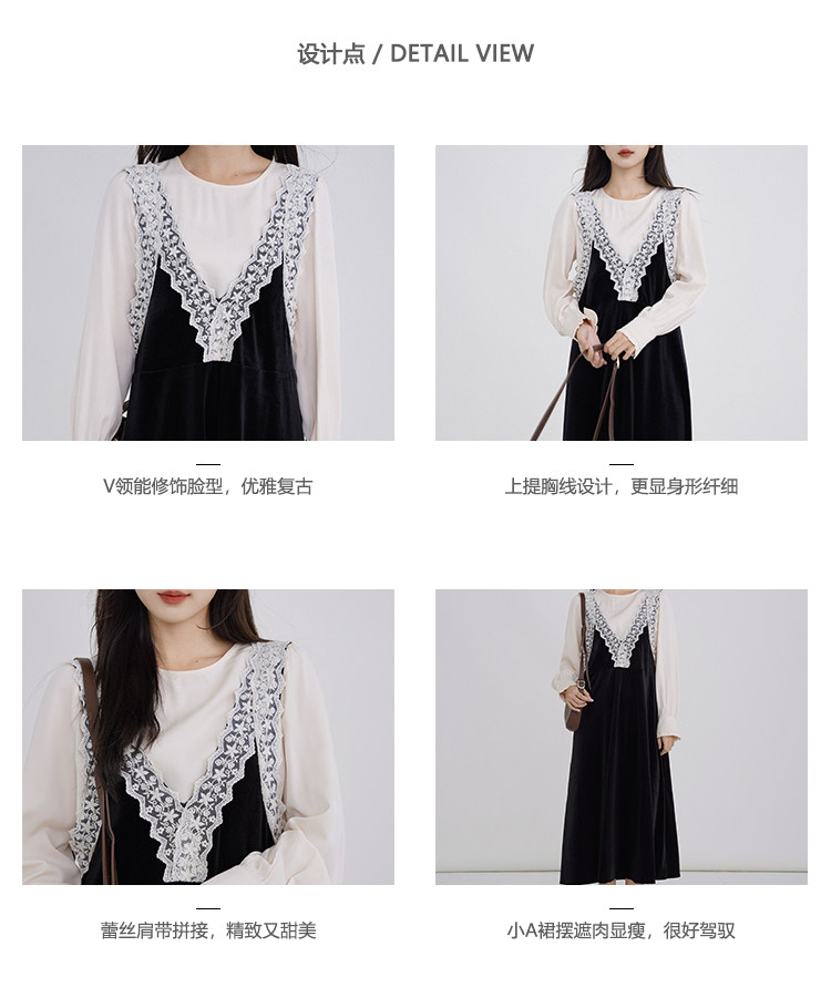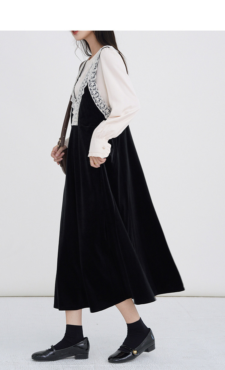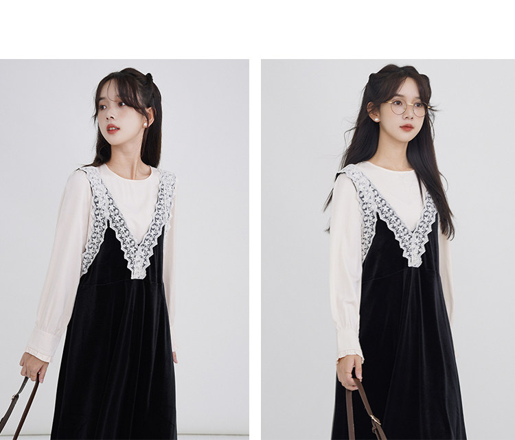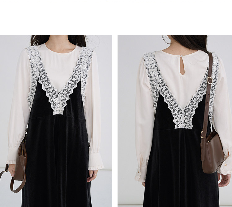 Осенняя рубашка, ретро кружевное комфортное платье, французский стиль, V-образный вырез