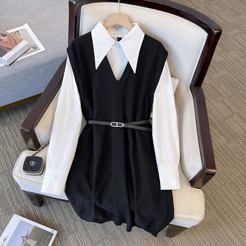 Осенняя рубашка, жилет, комплект, большой размер, подходит для полных девушек, французский стиль, в западном стиле
