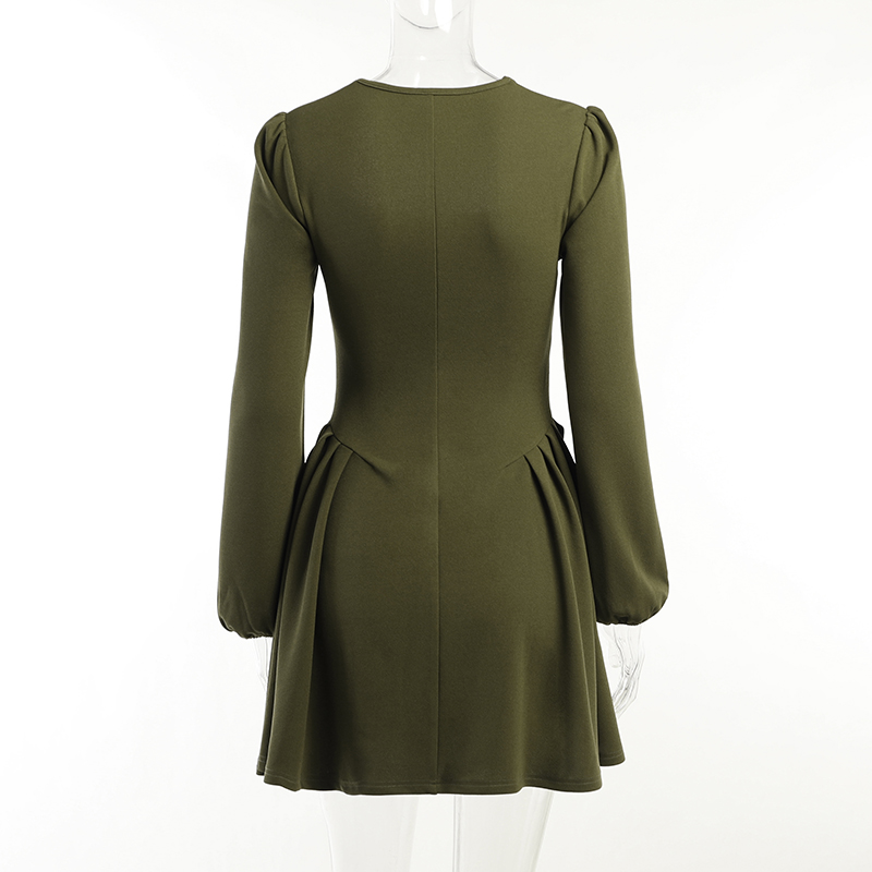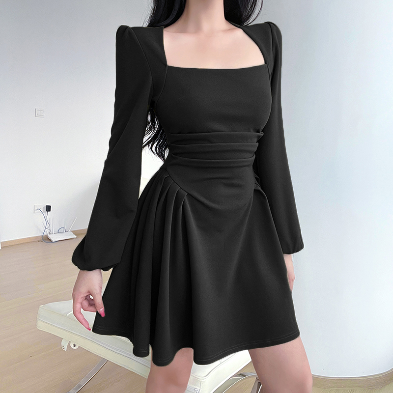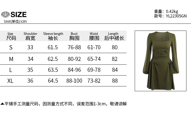 Ретро приталенный лонгслив, платье, зеленая мини-юбка, французский ретро стиль, квадратный вырез, А-силуэт