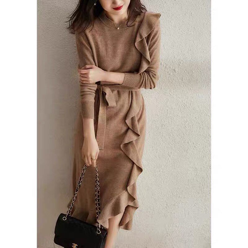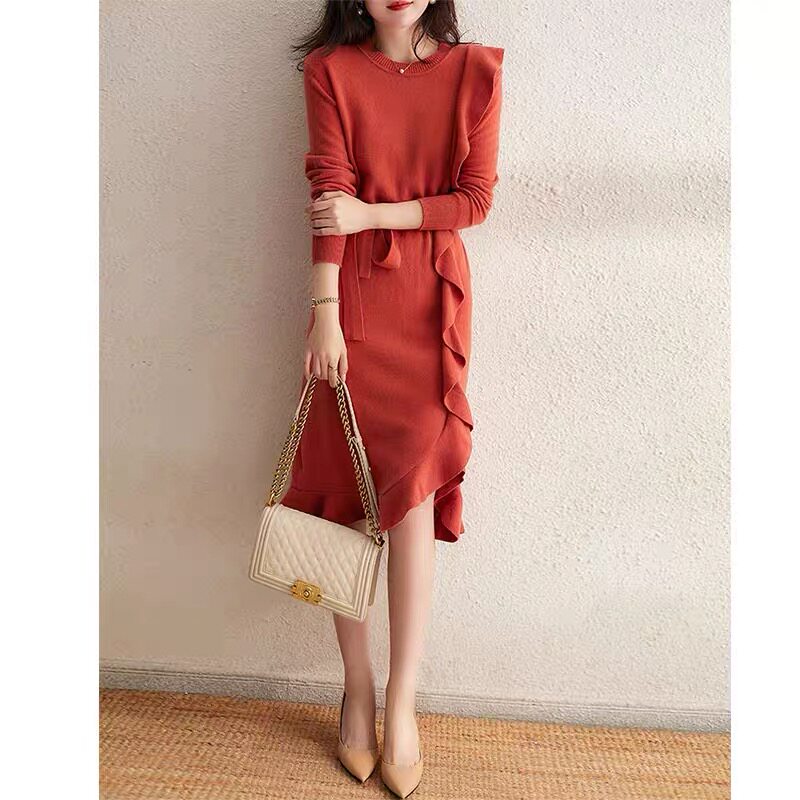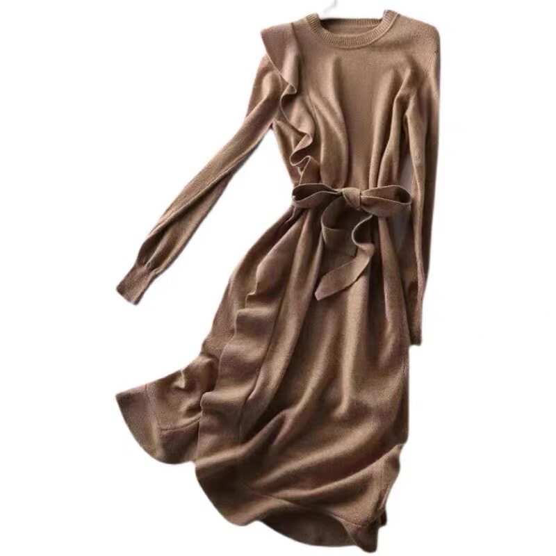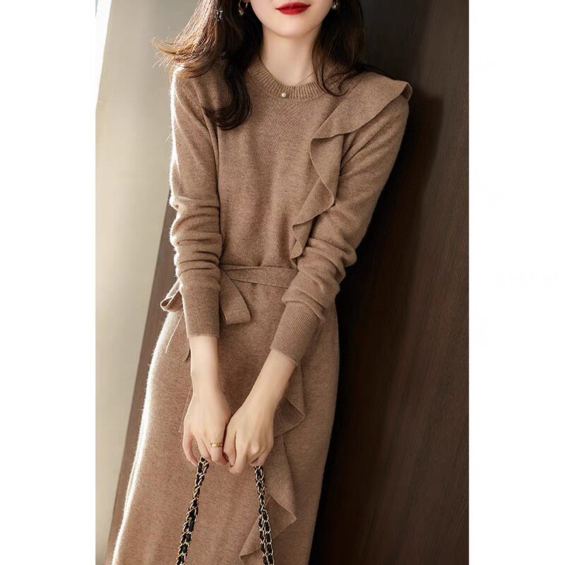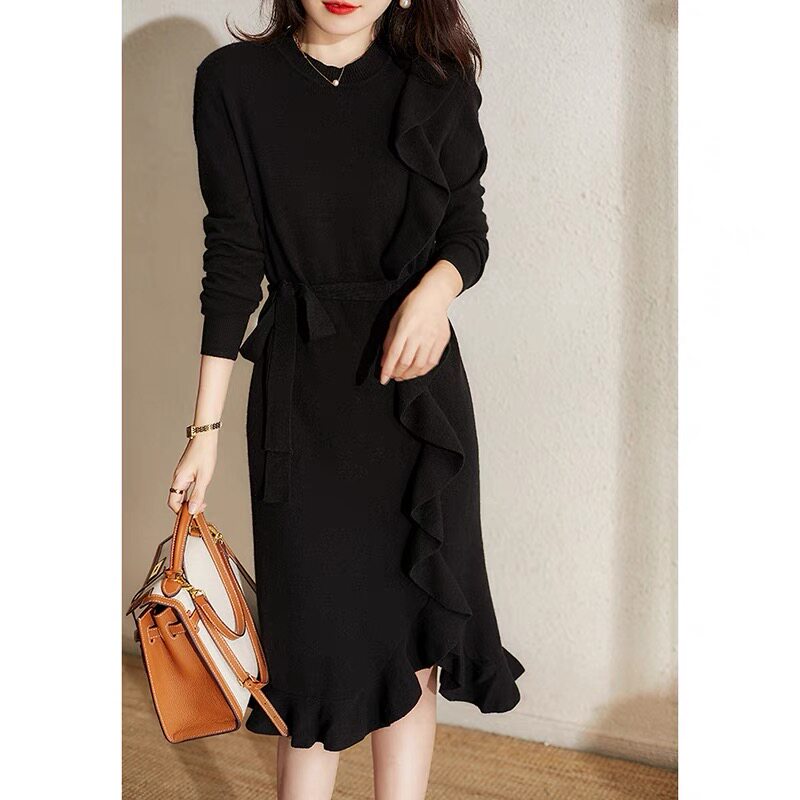 Шерстяное трикотажное платье, базовый свитер