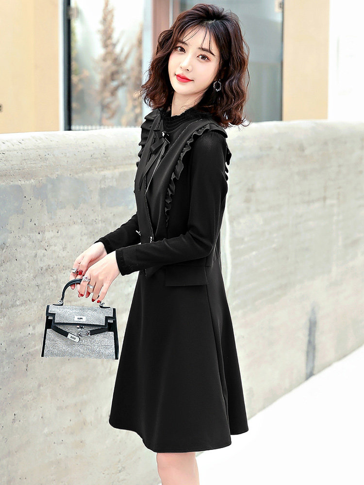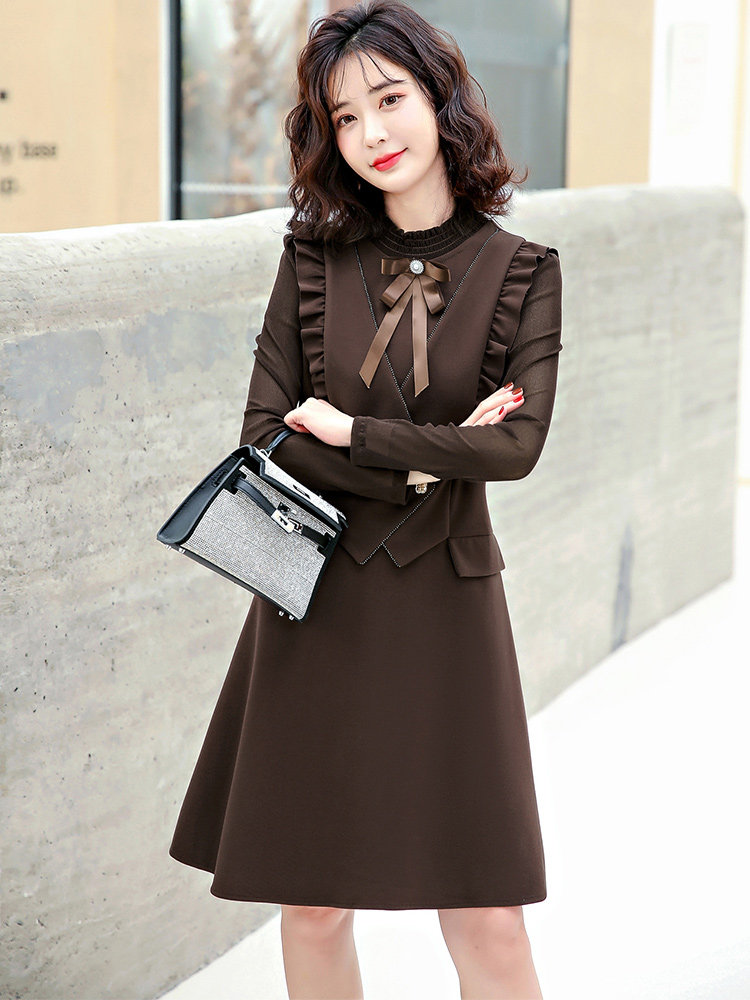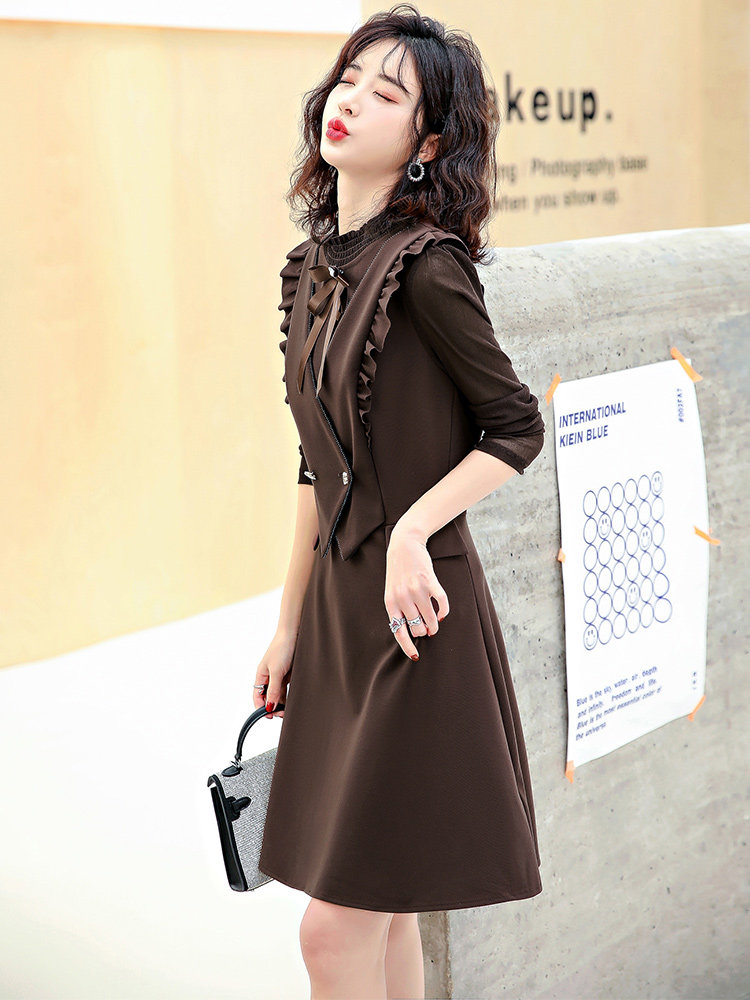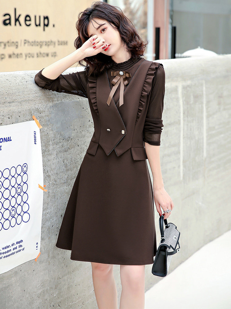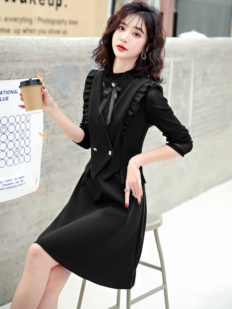 Осеннее платье, жилет, комплект, французский стиль, подходит для подростков, в корейском стиле