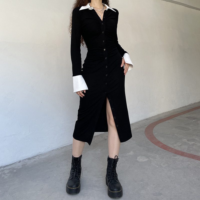 Рубашка, приталенный лонгслив, европейский стиль, с акцентом на бедрах