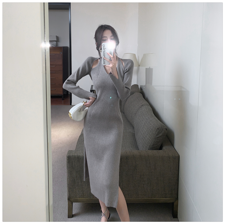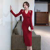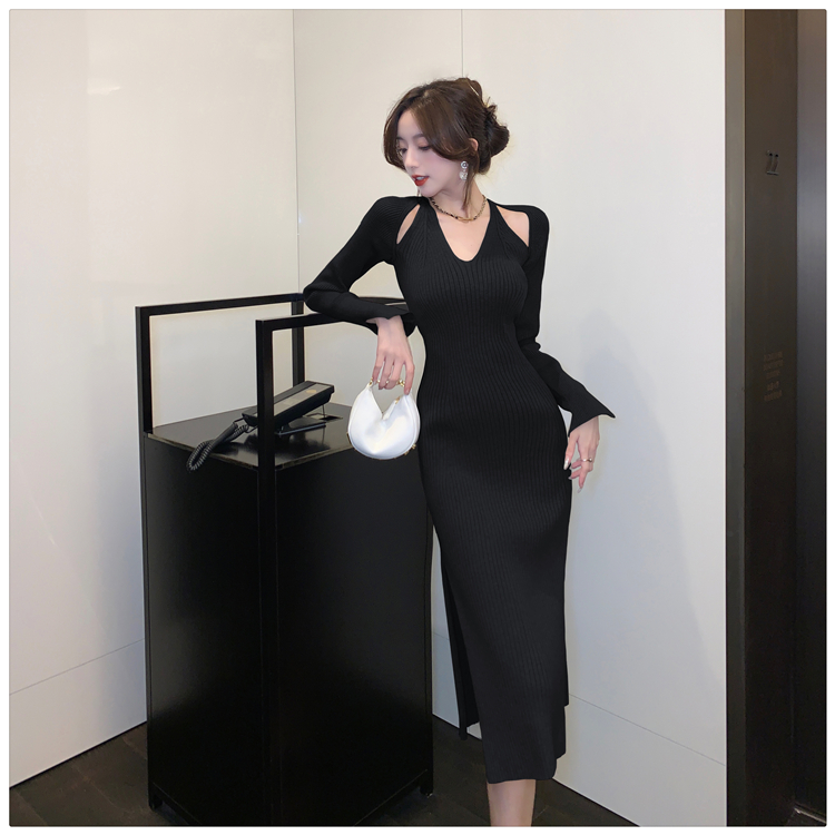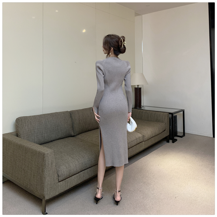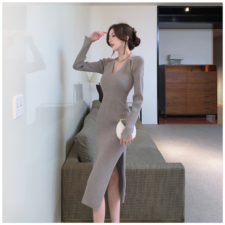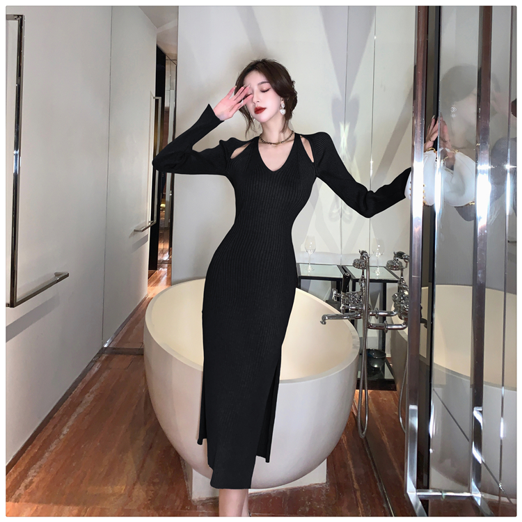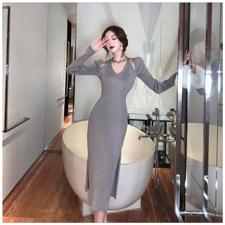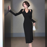 Весенний осенний дизайнерский лонгслив, эластичный трикотажный свитер, платье, 2024 года, французский стиль, с акцентом на бедрах