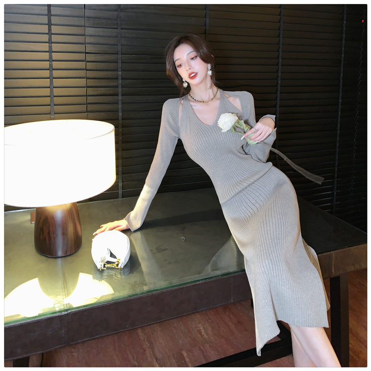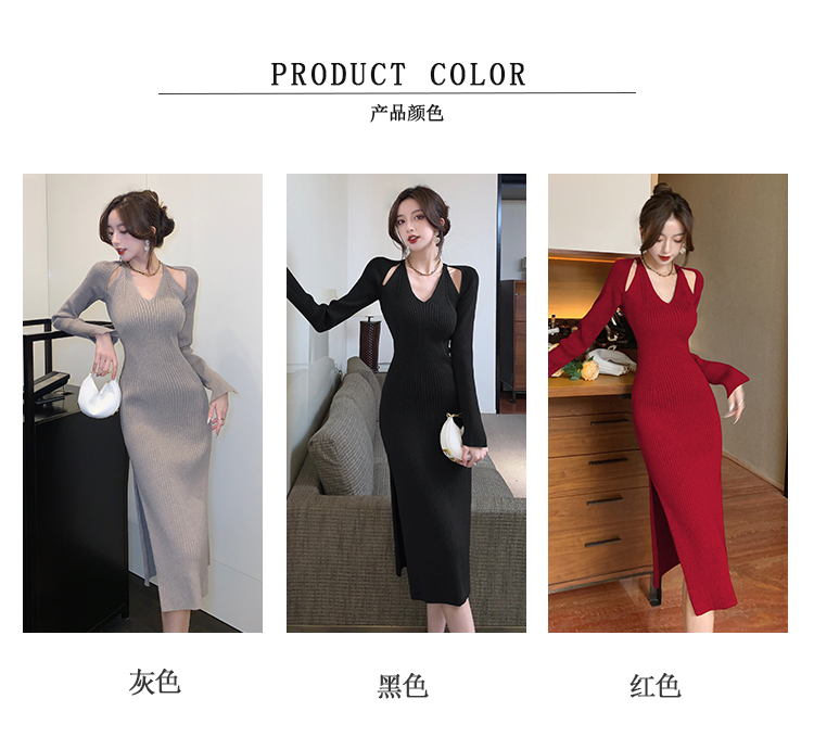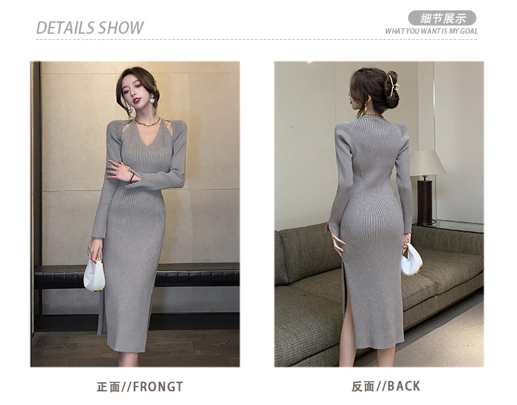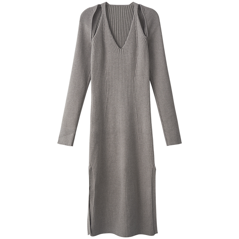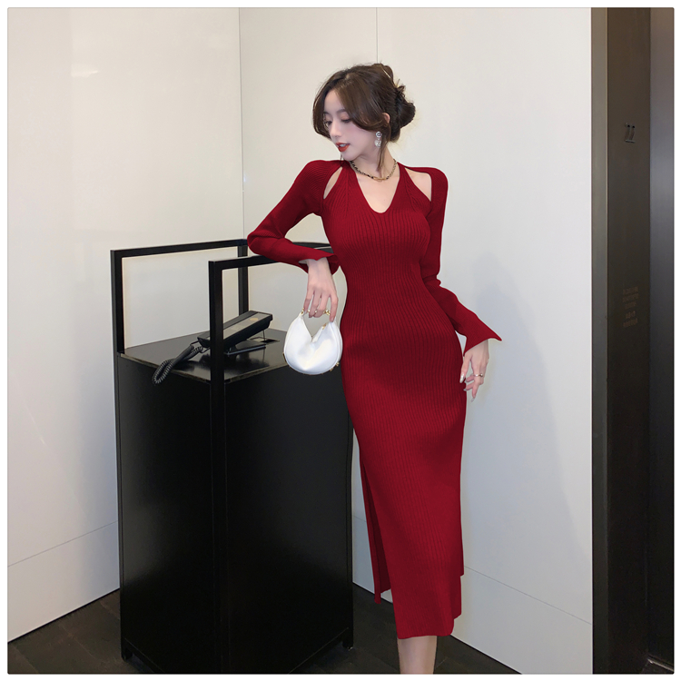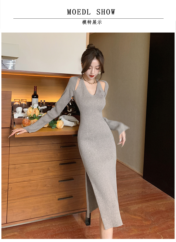 Весенний осенний дизайнерский лонгслив, эластичный трикотажный свитер, платье, 2024 года, французский стиль, с акцентом на бедрах
