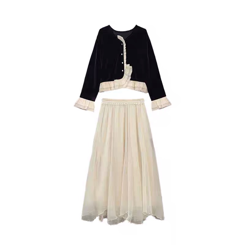 Осенний модный комплект, юбка, в стиле Шанель, изысканный стиль, в западном стиле