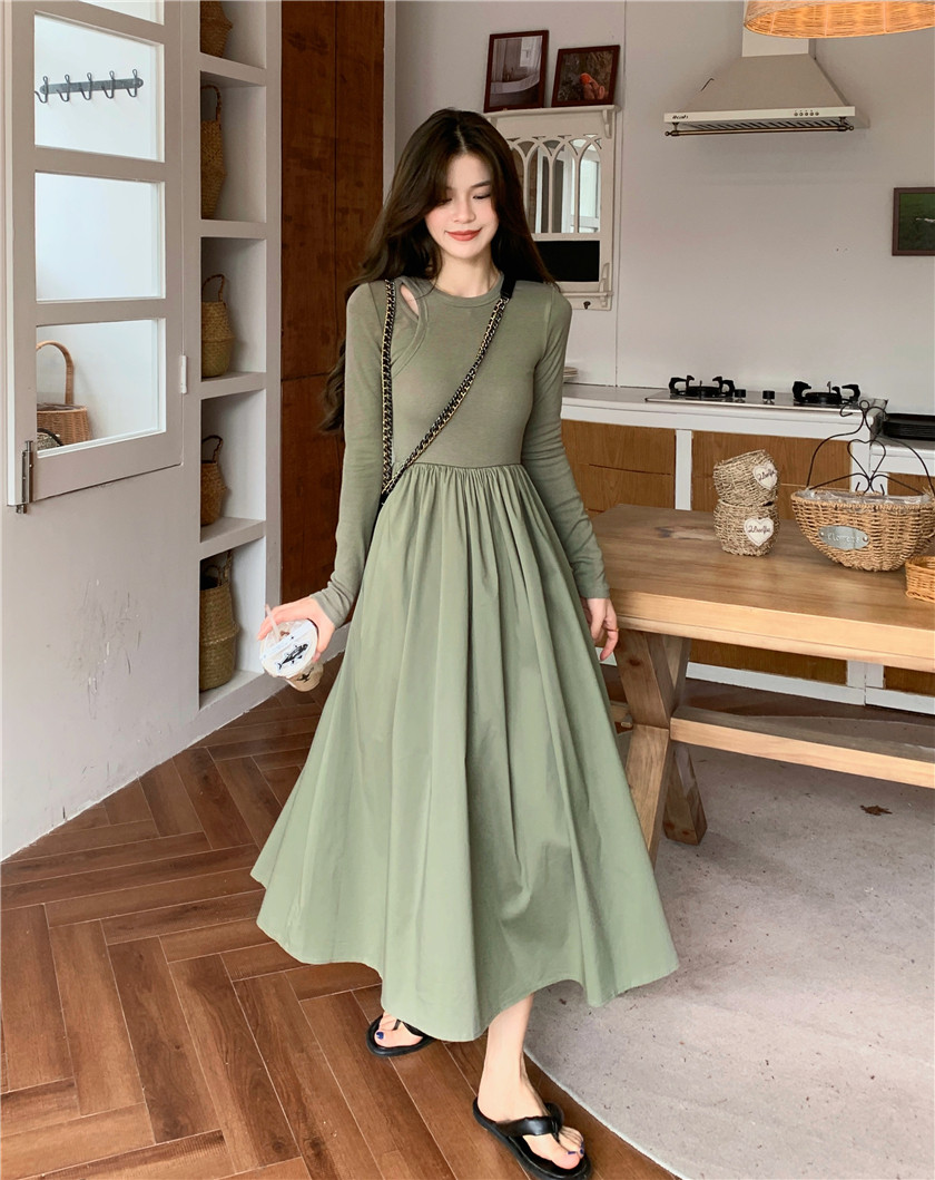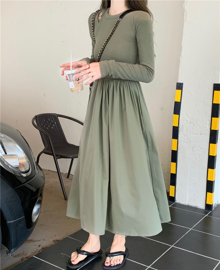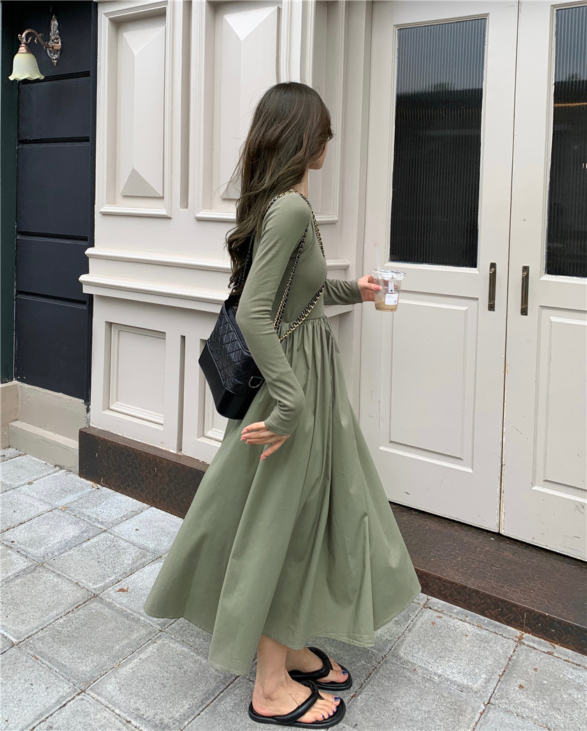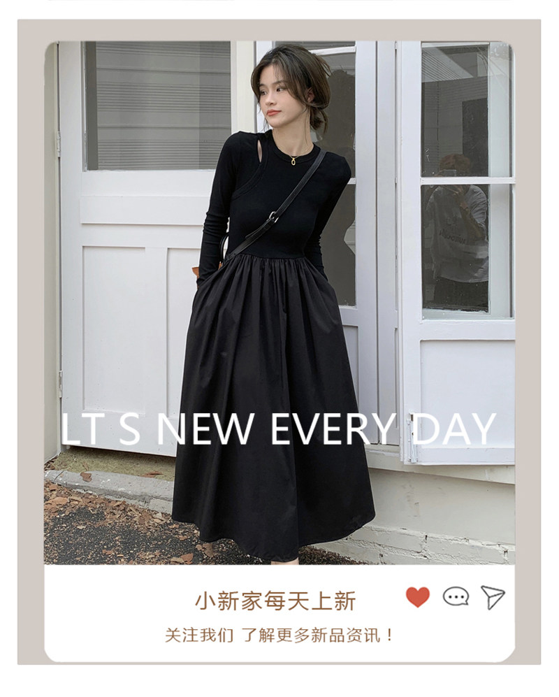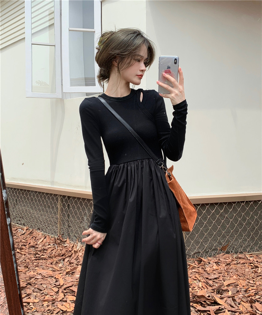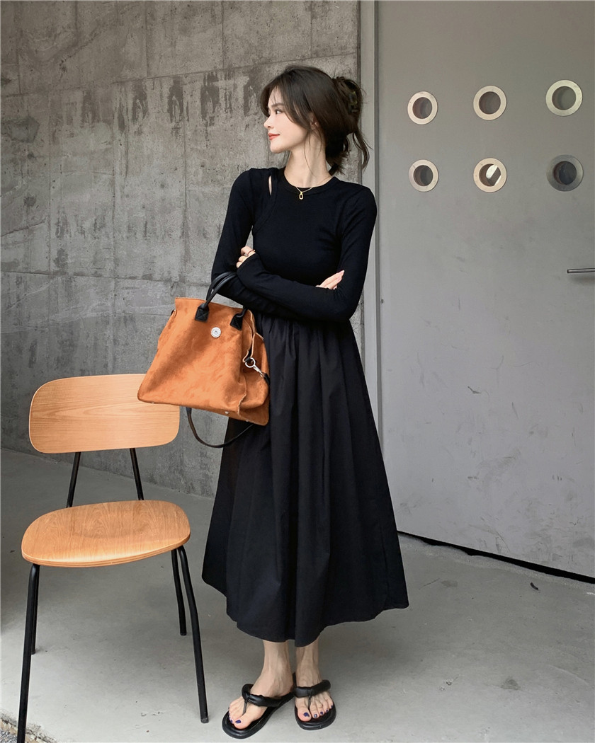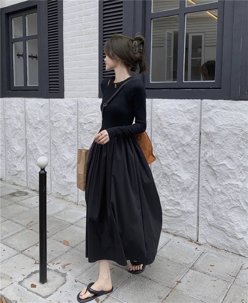Дизайнерский осенний лонгслив, длинное черное платье, тренд сезона, французский стиль, А-силуэт