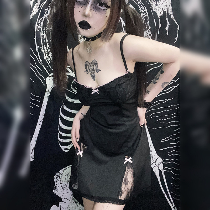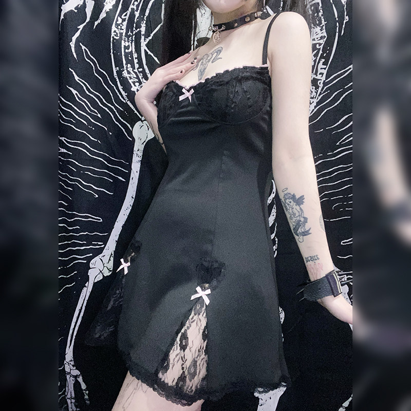 Сексуальное кружевное платье-комбинация, приталенный корсет с бантиком, черная мини-юбка, кружевное платье
