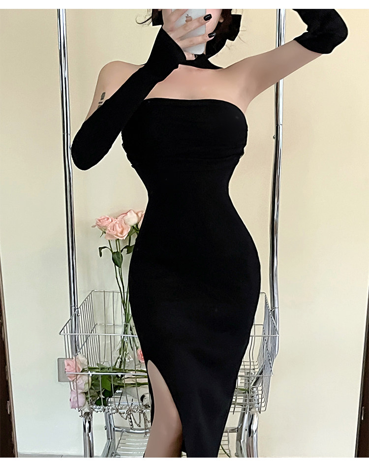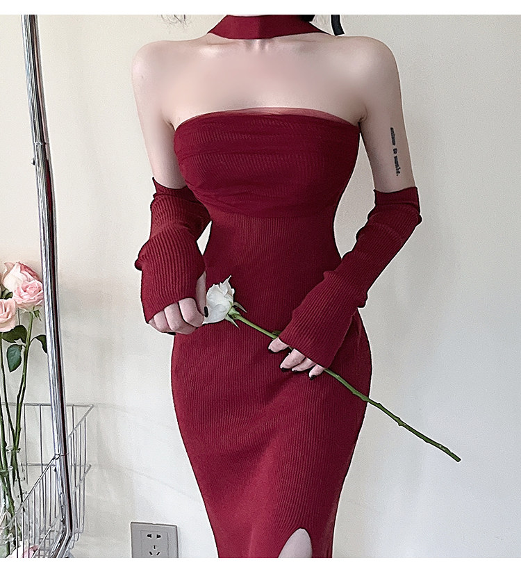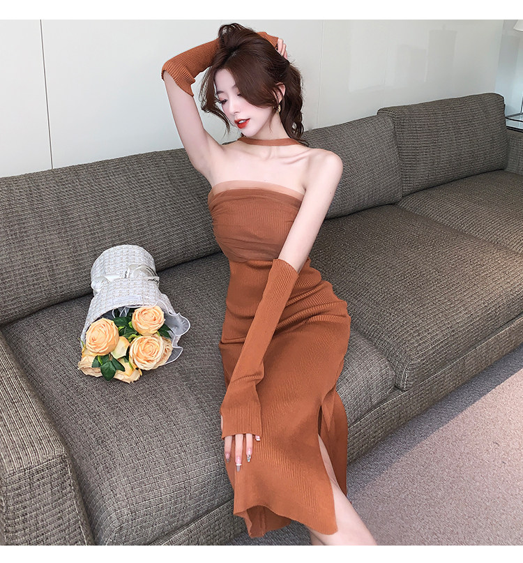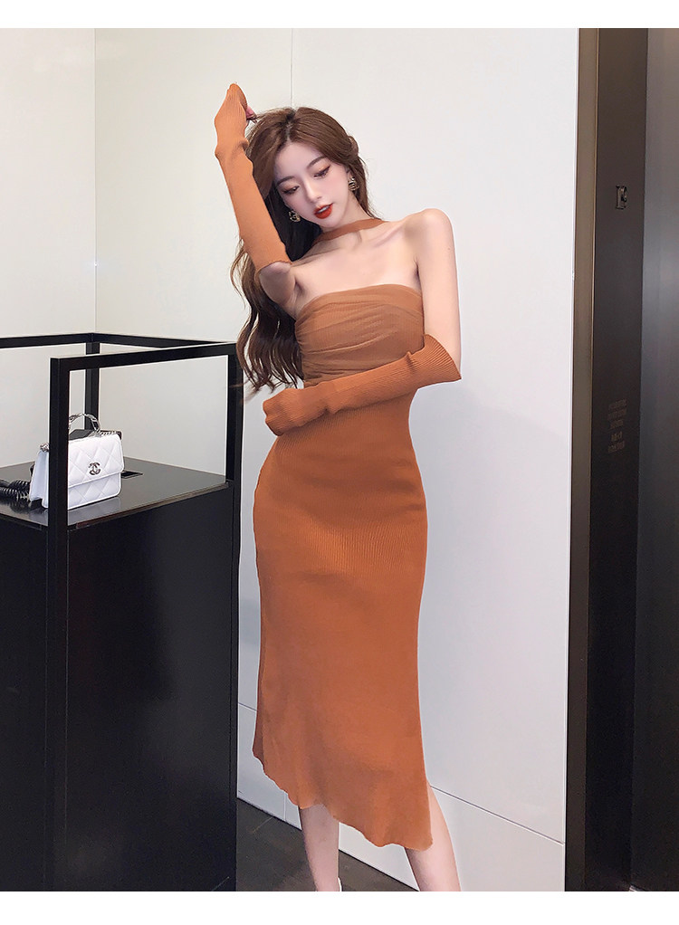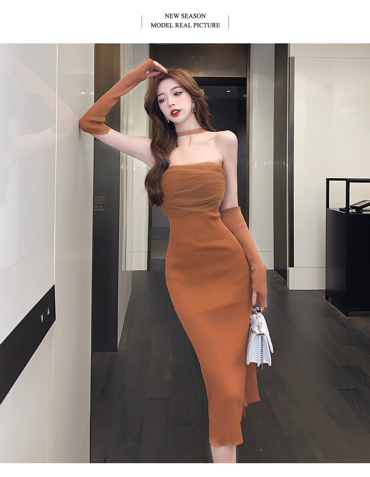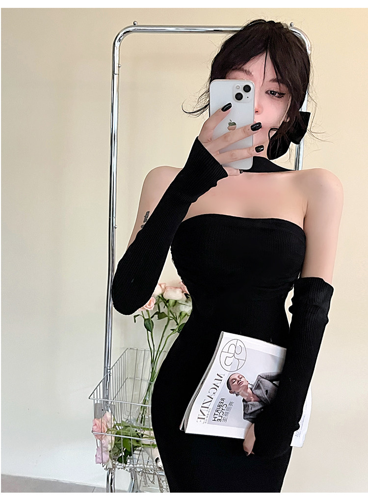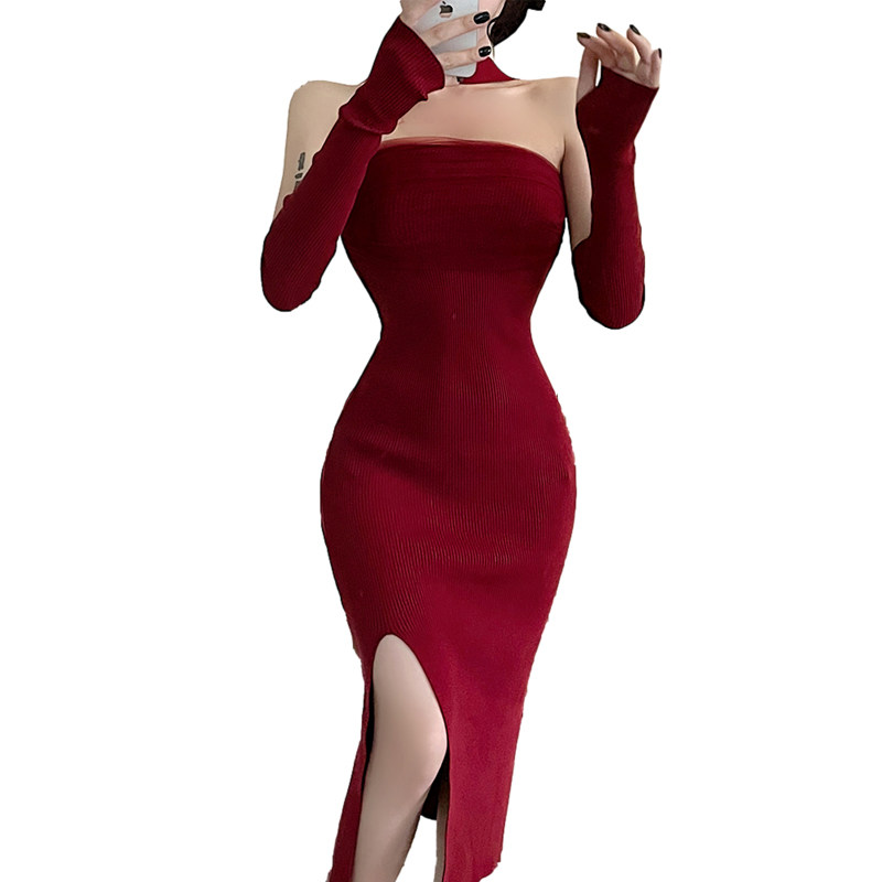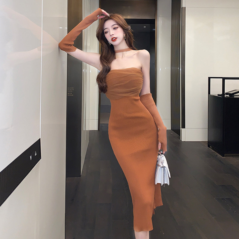 Сексуальный топ без лямок, приталенная длинная юбка, трикотажное платье, открытые плечи