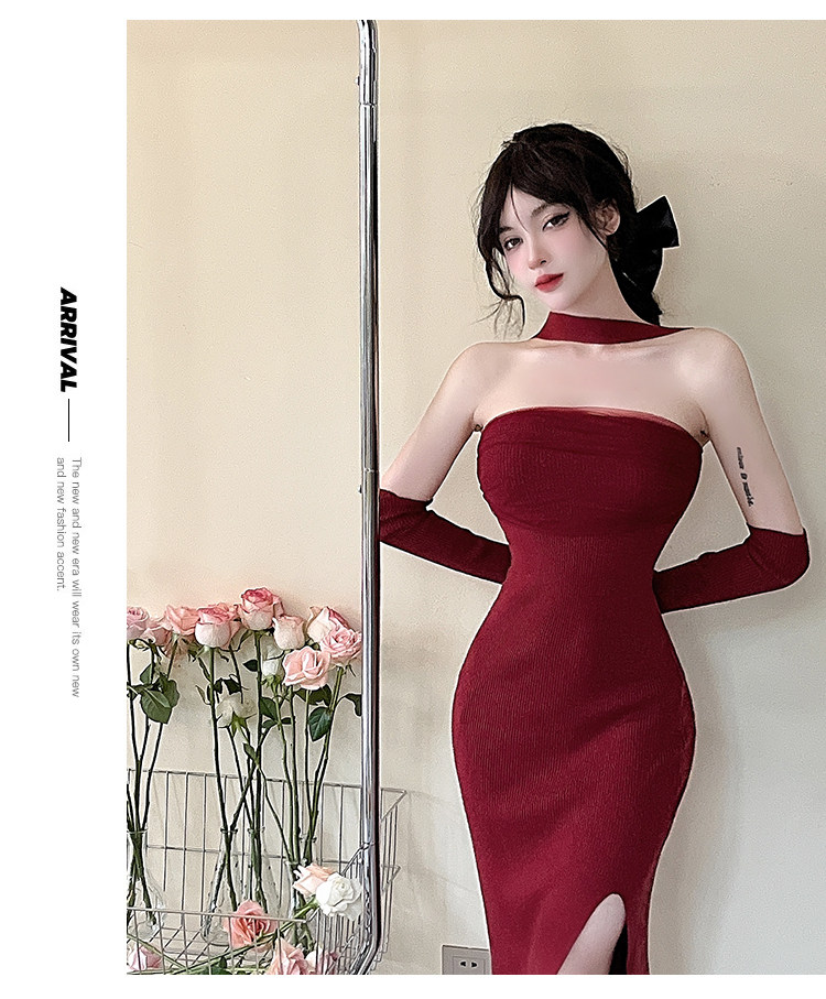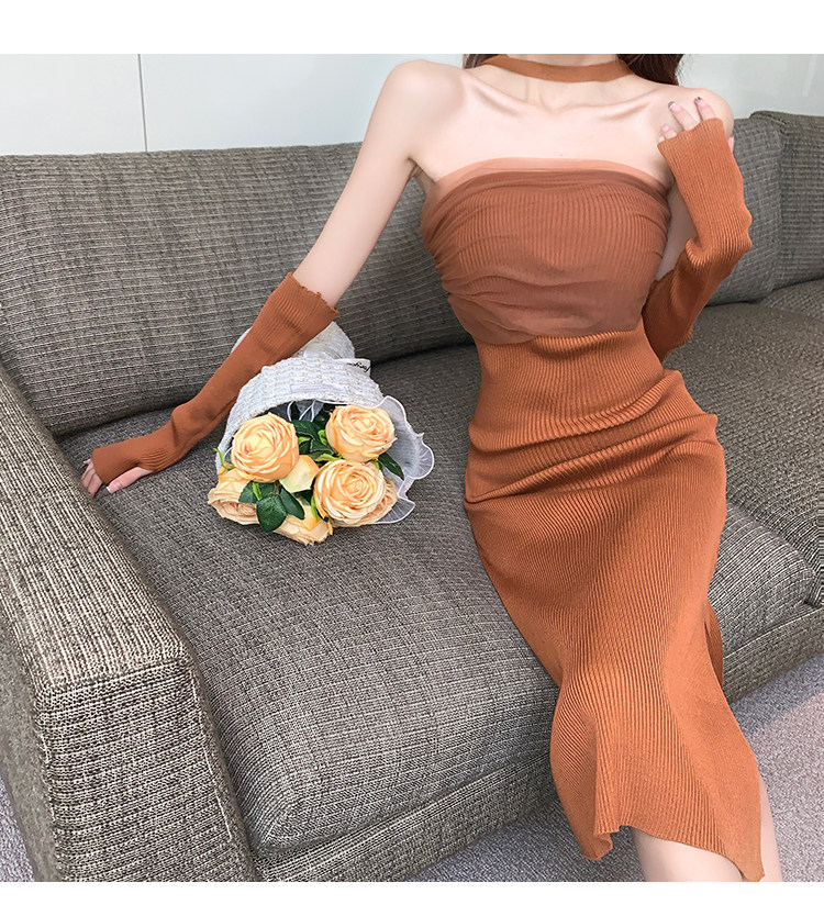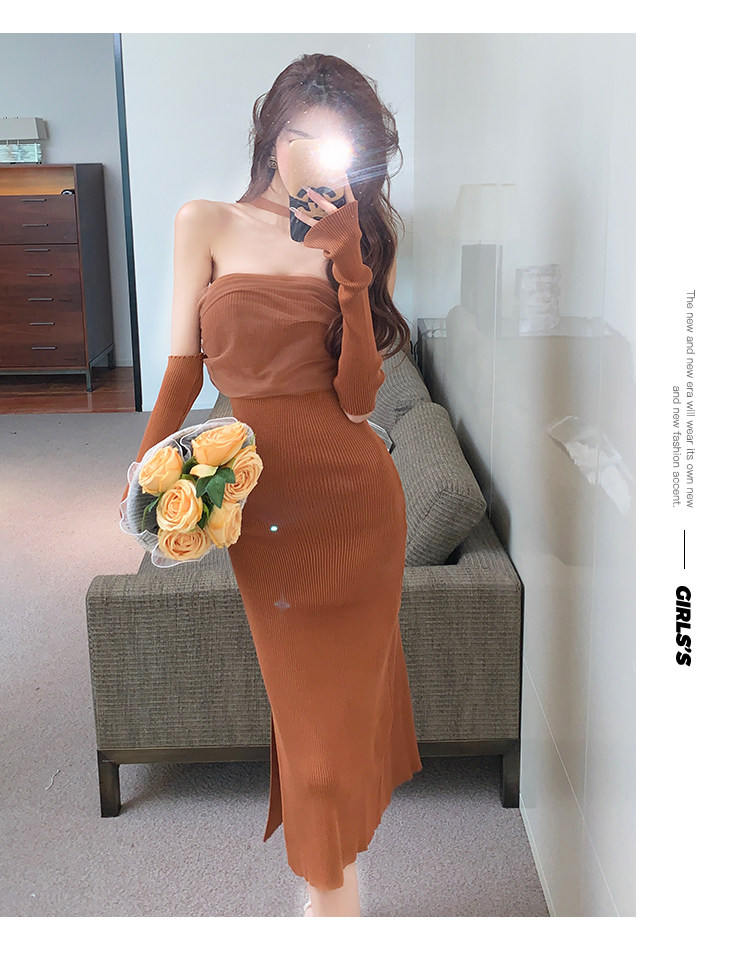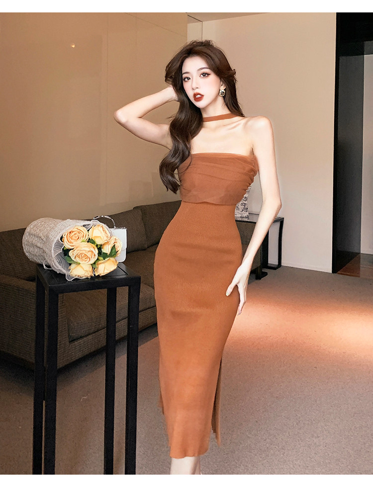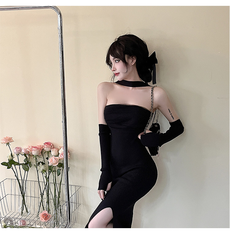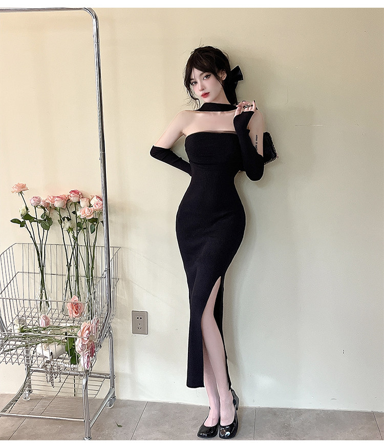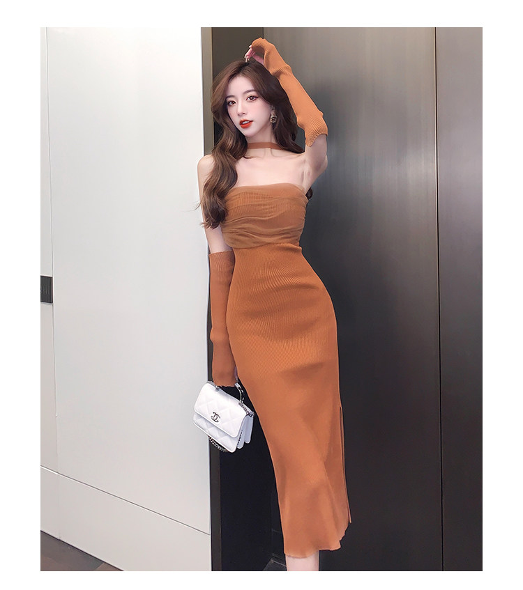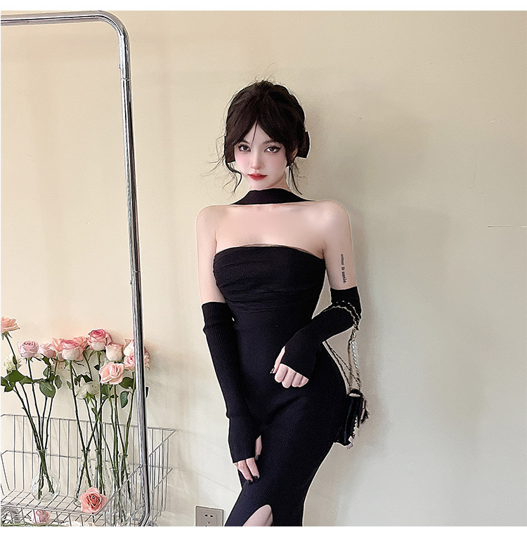 Сексуальный топ без лямок, приталенная длинная юбка, трикотажное платье, открытые плечи