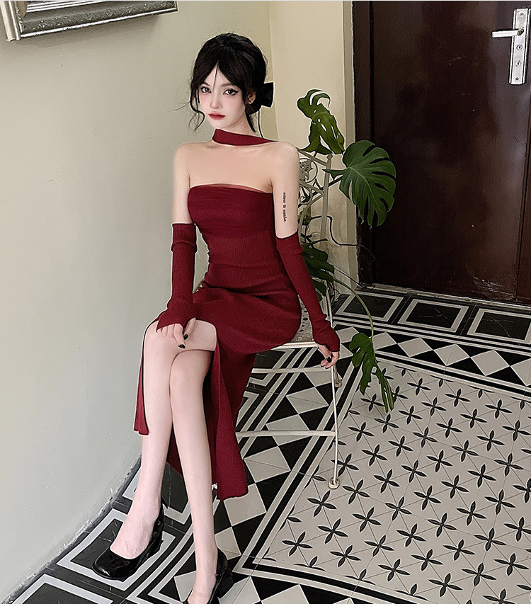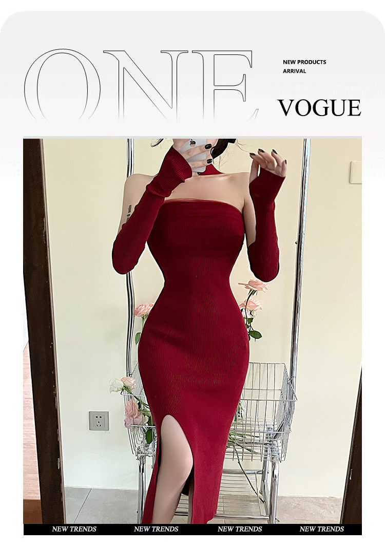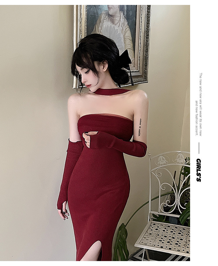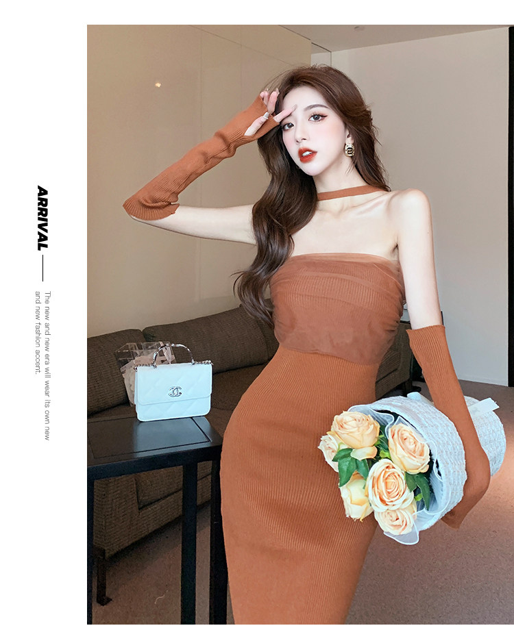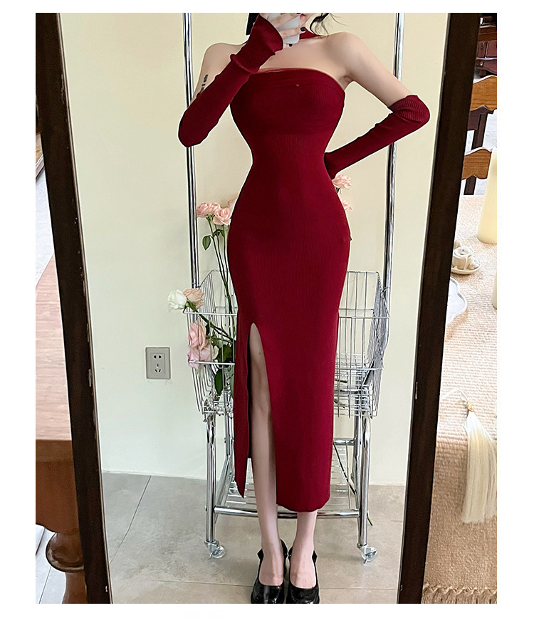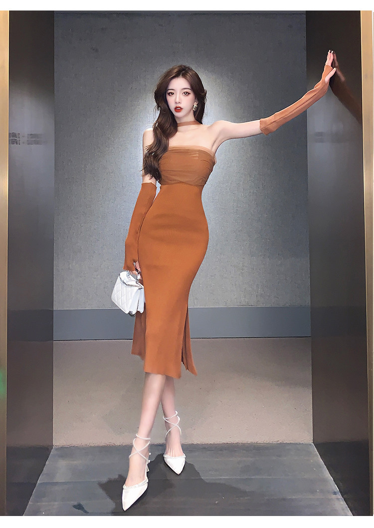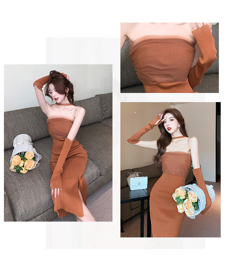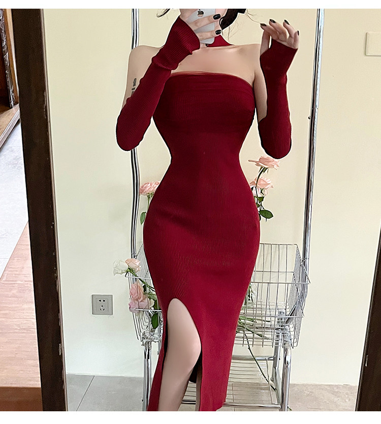 Сексуальный топ без лямок, приталенная длинная юбка, трикотажное платье, открытые плечи