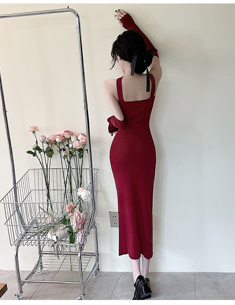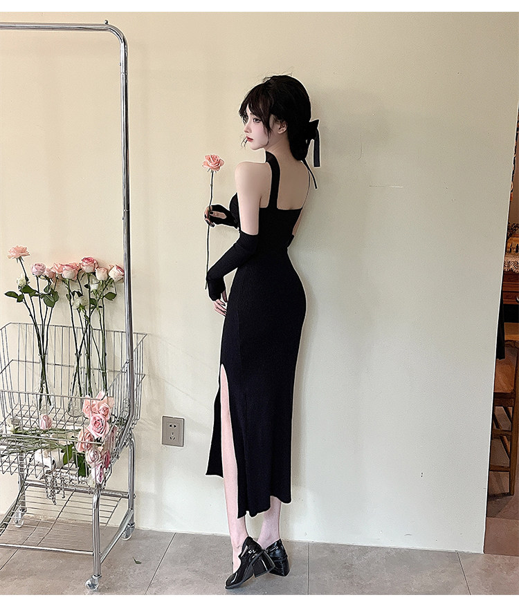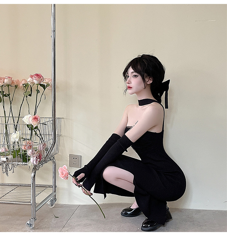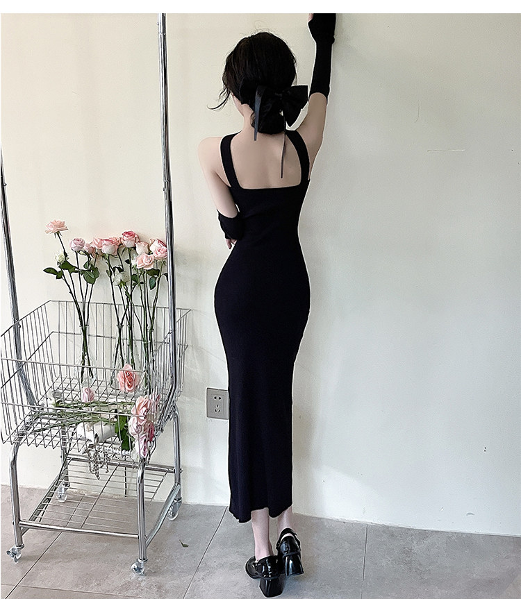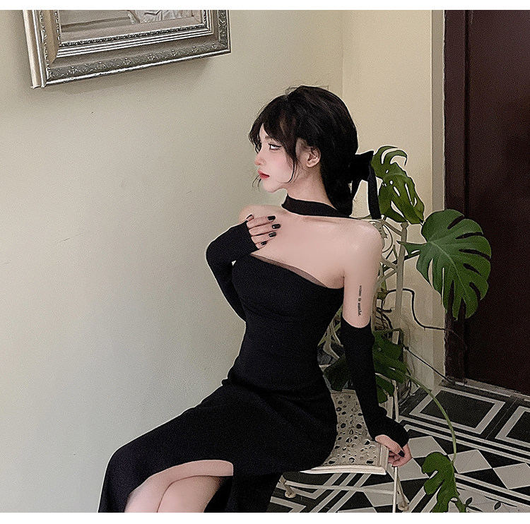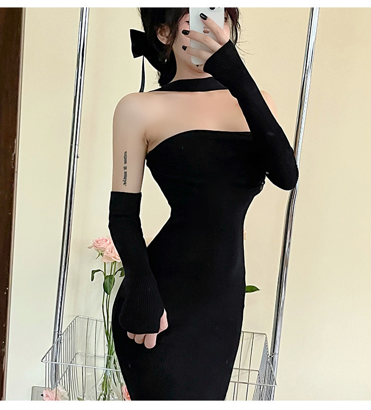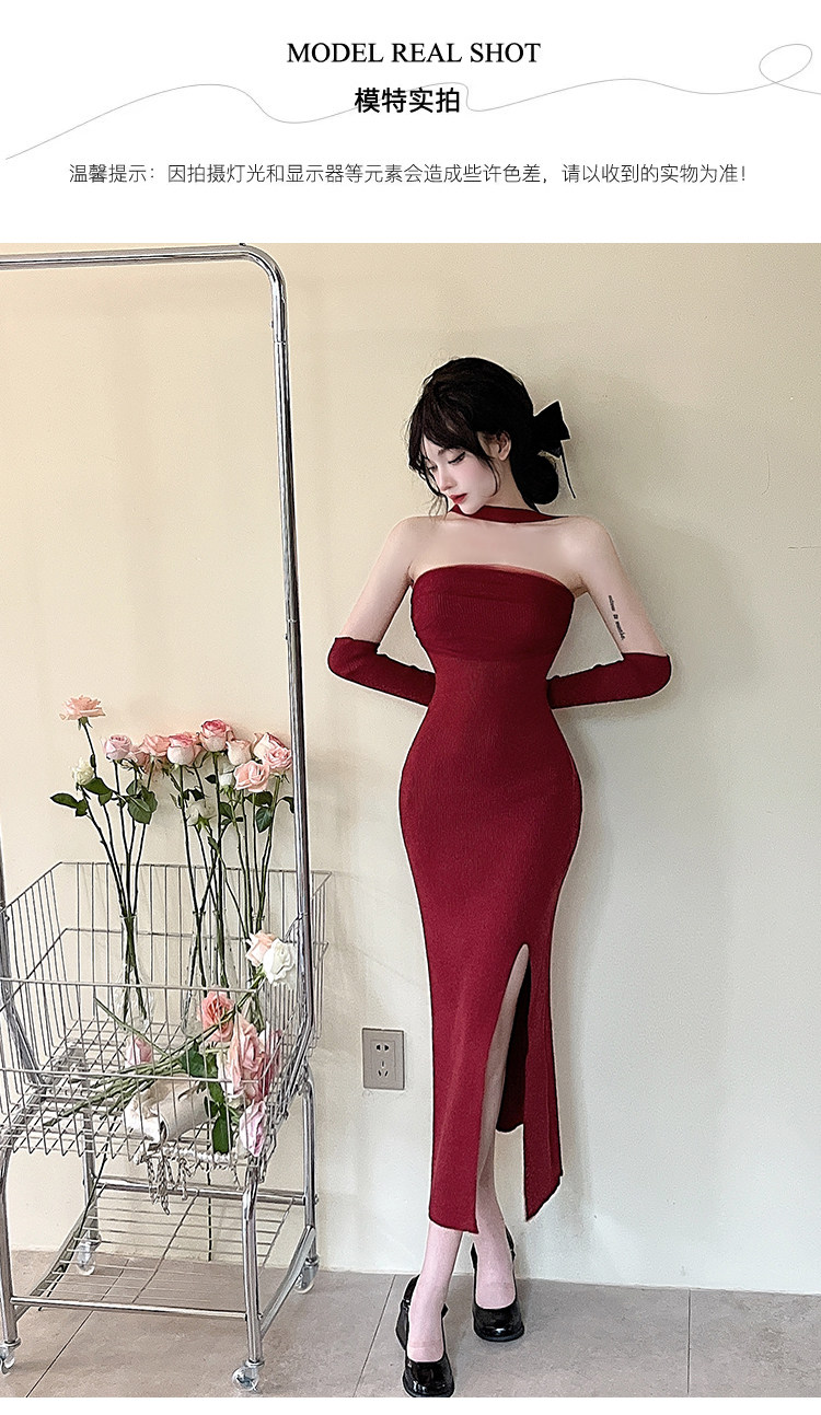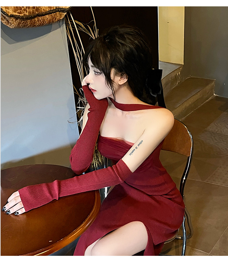 Сексуальный топ без лямок, приталенная длинная юбка, трикотажное платье, открытые плечи