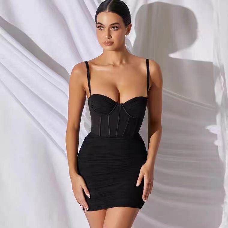 Брендовое сексуальное платье-комбинация, европейский стиль, популярно в интернете, с акцентом на бедрах, облегающий крой