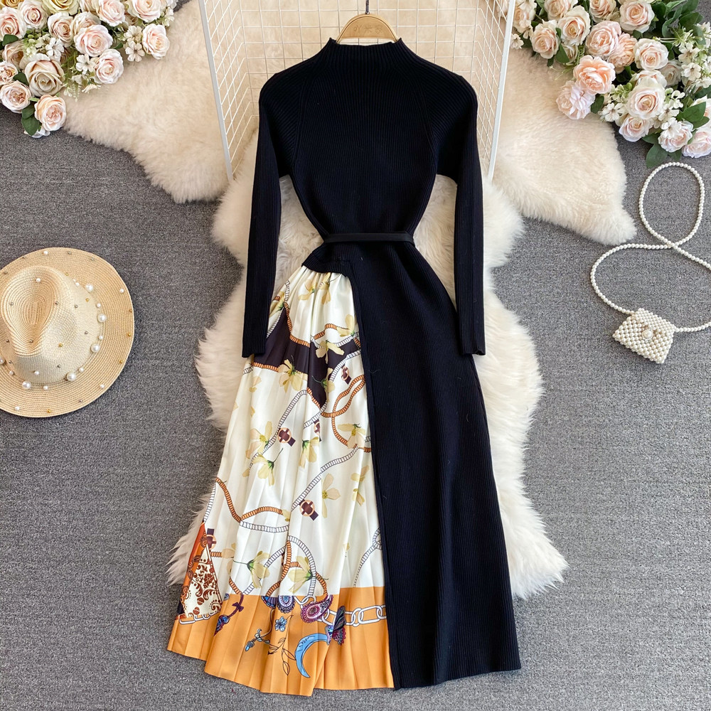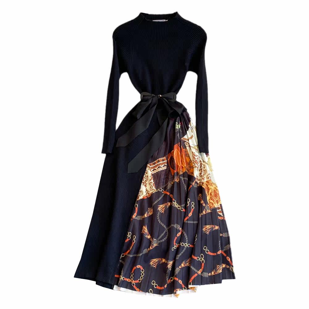 Ретро трикотажный лонгслив, приталенный корсет, элегантное платье, длинная юбка, изысканный стиль, яркий броский стиль