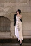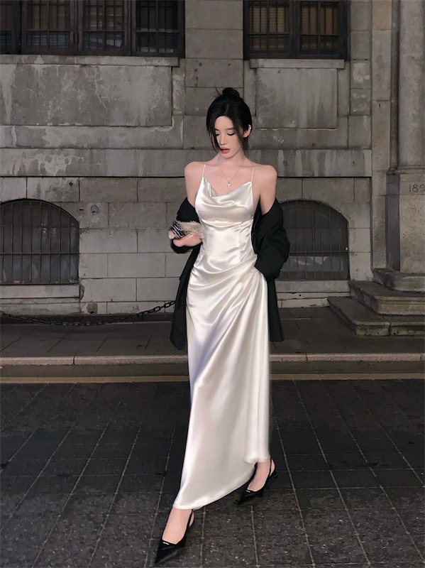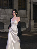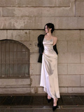 Длинное небольшое дизайнерское белое сексуальное вечернее платье, юбка, французский стиль, тренд сезона, с открытой спиной, средней длины