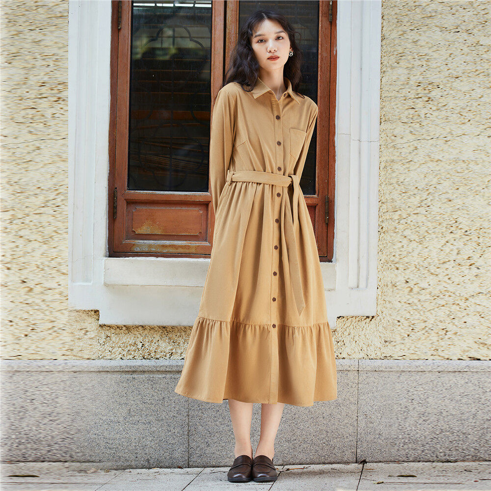 Весеннее вельветовое платье, модный длинный ремень