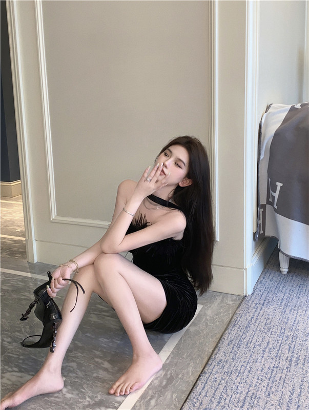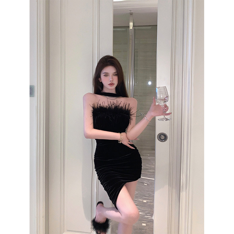 Черный бархатный топ без лямок, платье, сексуальная мини-юбка, юбка, открытые плечи, в обтяжку, с акцентом на бедрах