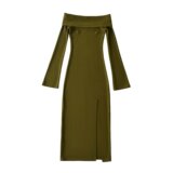 Демисезонный сексуальный лонгслив, юбка, европейский стиль, открытые плечи, с акцентом на бедрах
