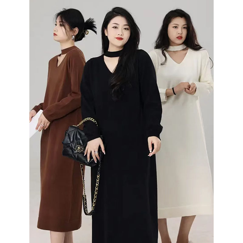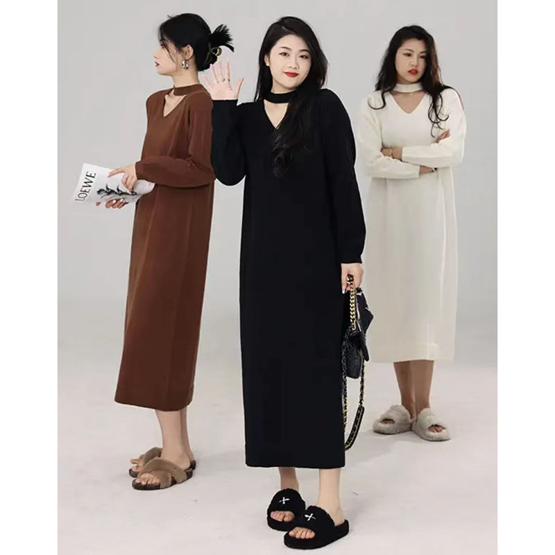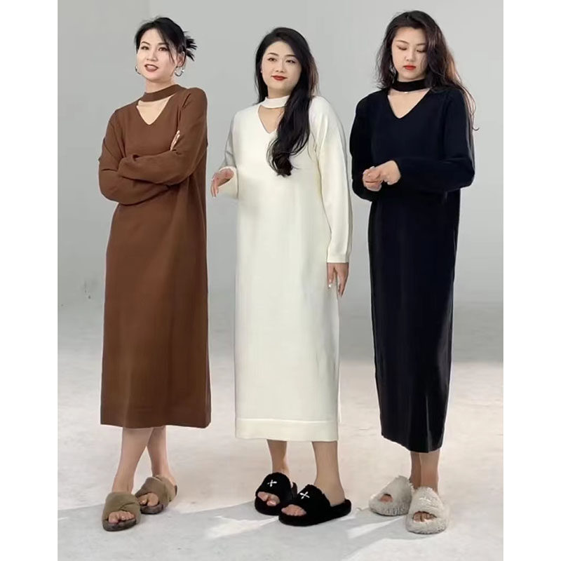 Трикотажное трикотажное платье, шерстяное платье, большой размер, по фигуре